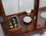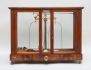 i glasmonter med ram i mahogny, med måttsats i schatull, samt porslinsskål med lock ,mässing, brickmärkt A. Verbeek & Peckholdt Dresden Tyskland, höjd 45, bredd 59, djup 25