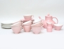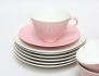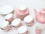 teservisdelar 20 delar, 11 koppar med fat, 6 assietter, kanna, gräddkanna samt sockerskål, Rörstrand, höjd 7