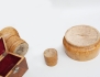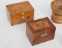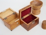2 sandströare höjd 10/5, skål höjd 7, diameter 14, 2 skrin varav ett med nyckelskylt och knopp i ben, och ett i valnöt, höjd 8/7,5, bredd 13/11, samtliga föremål av björkrot
