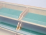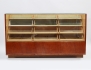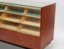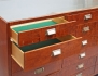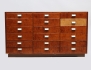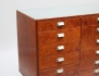 mörkbetsat trä och glas, 18 lådor med draghandtag i metall, höjd 85, bredd 151, djup 61 (en lådfront senare, några lådor kärvar)