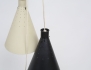 takarmatur modell "T-7", 1950-tal, tre perforerade plåtskärmar vardera i färgerna vitt, rött och svart/blå, reglerbara höjder, skärmarnas höjd 28 (smärre bruksslitage)