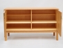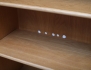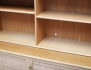 sideboard med bokhylla 1960-tal, ekfanér, pardörrar med rotting, bakomliggande 4 hyllplan, överdel med 3+3 hyllplan, brännstämpel, höjd 72/111 (183), bredd 120, djup 45 (hyllans bakstycke med flera hål för sladdar, skivan med färgskiftning och djupa repor, mindre fanerskador)