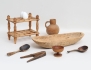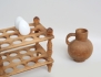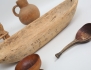 tråg signerad H.AAS 1747, längd 42, passare märkt 1703, längd 17, 2 skedar längd 14,5/19, saltkar höjd 5,5, kanna höjd 14,5 , äggställ 22x15, 2 ägg i glas