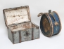 skrin beslag och lås i smide, originalmålning (kompletterad), monogram NSS 1840, höjd 22, bredd 33x21, laggkärl originalmålning, höjd 31 (2)