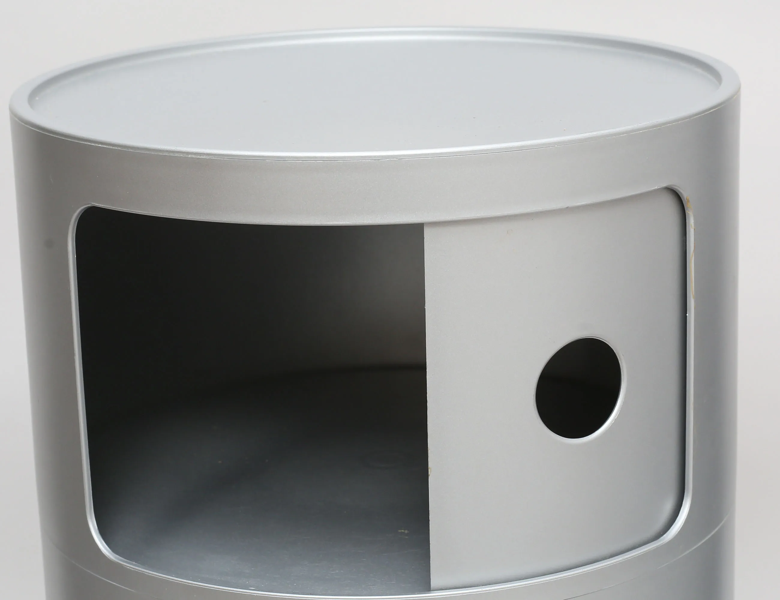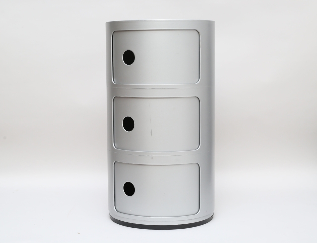 skåp/modulmöbel "Componibili", Kartell sent 1900-tal, tre sektioner, silverfärgad plast, höjd 58, diameter 32