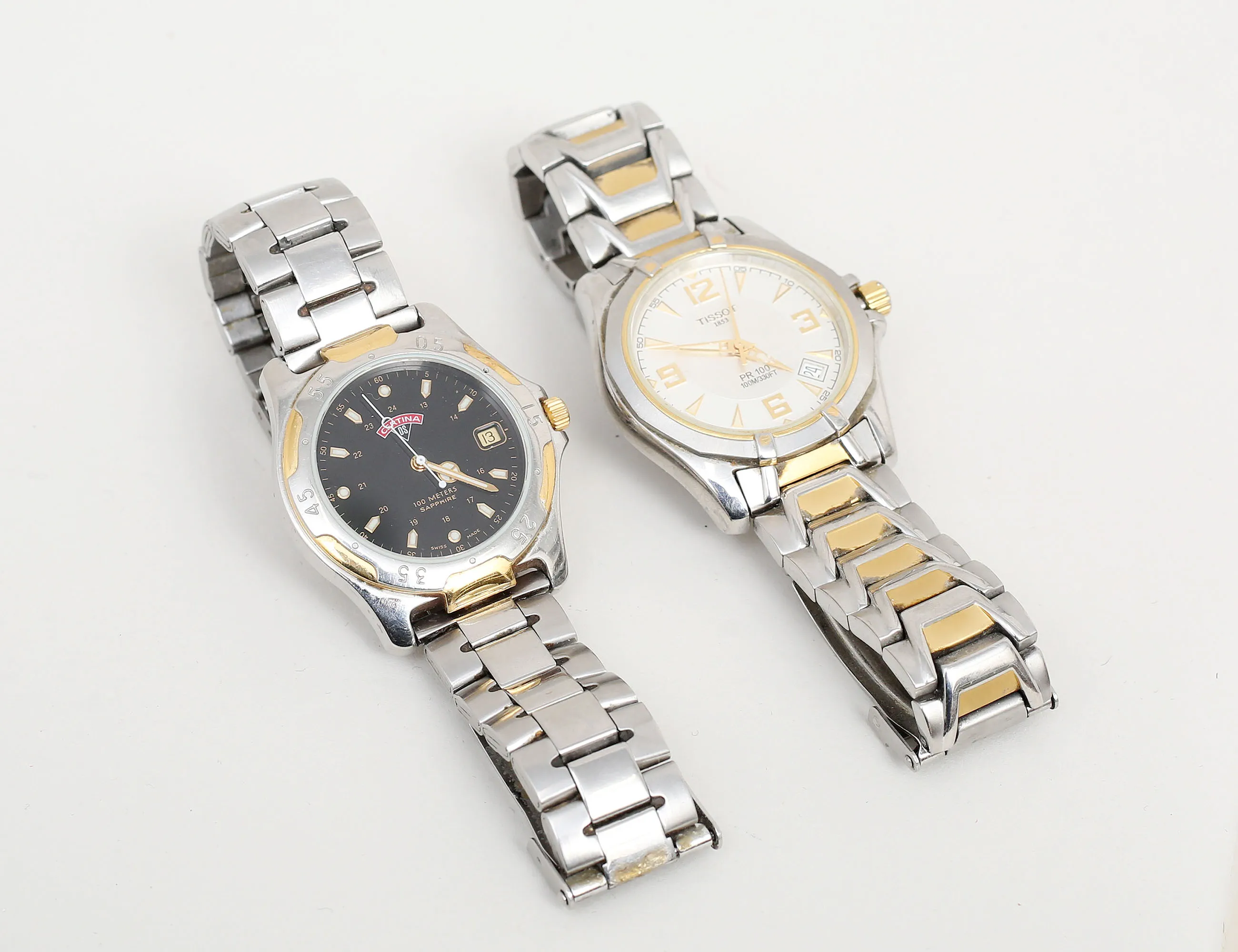 Tissot PR 100, quartz, stål, Certina DS 100 meter, stål, safirglas, diameter 38mm., Certina fungerar vid katalogiseringstillfället (smärre bruksslitage)