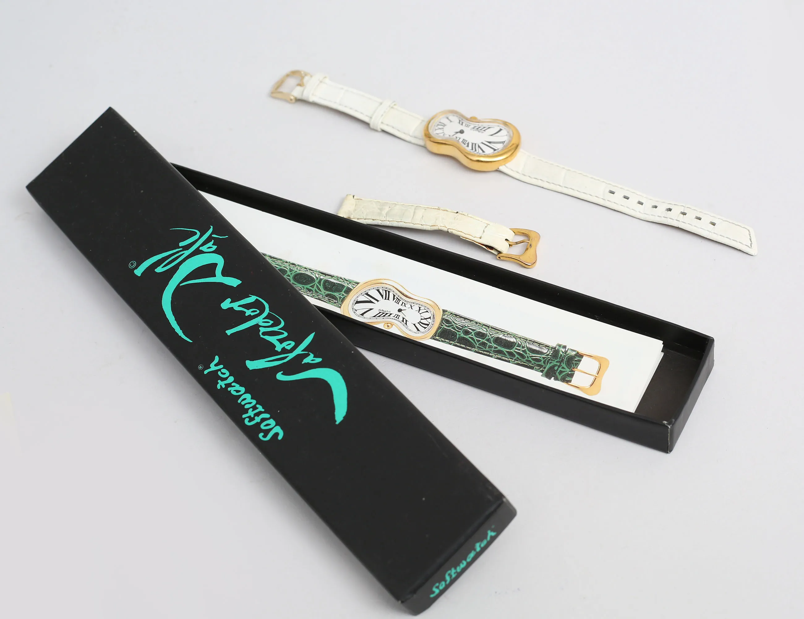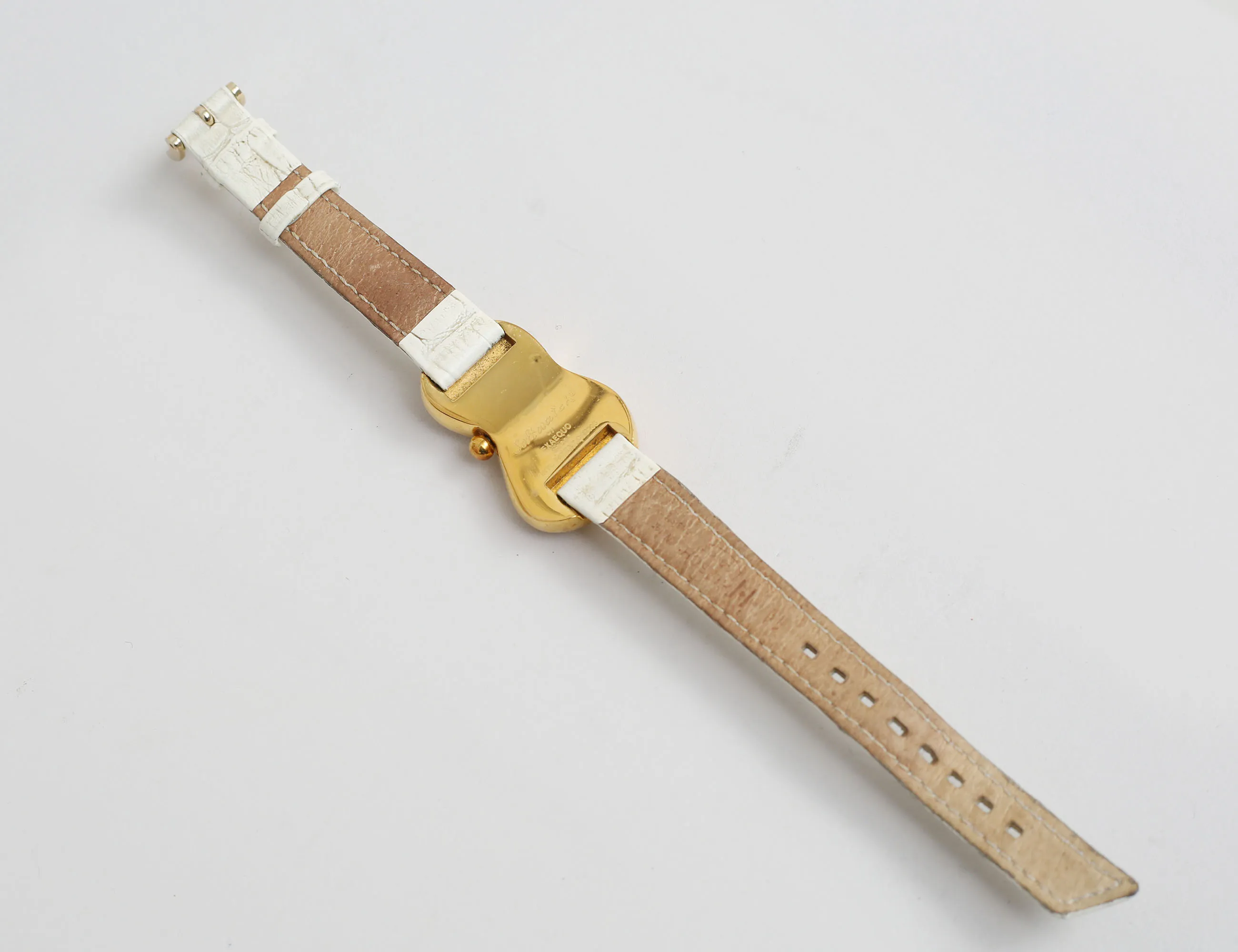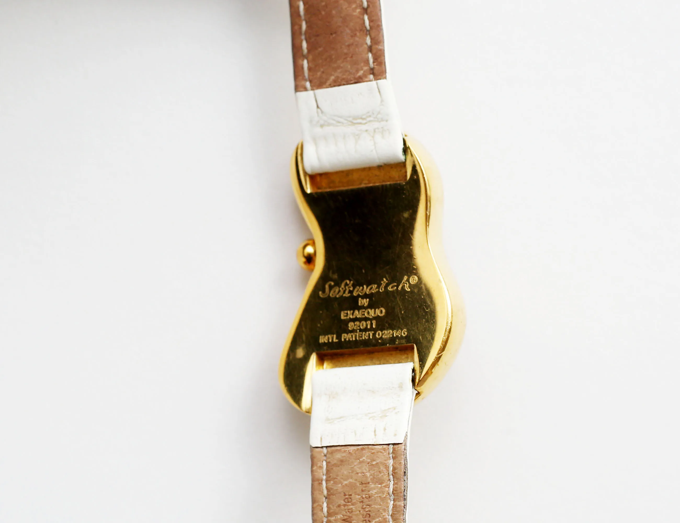 Softwatch 1990-tal, quartz, guldpläterad, vitt läderarmband ej original, del av original medföljer, originalbox samt broschyr (bruksslitage)
