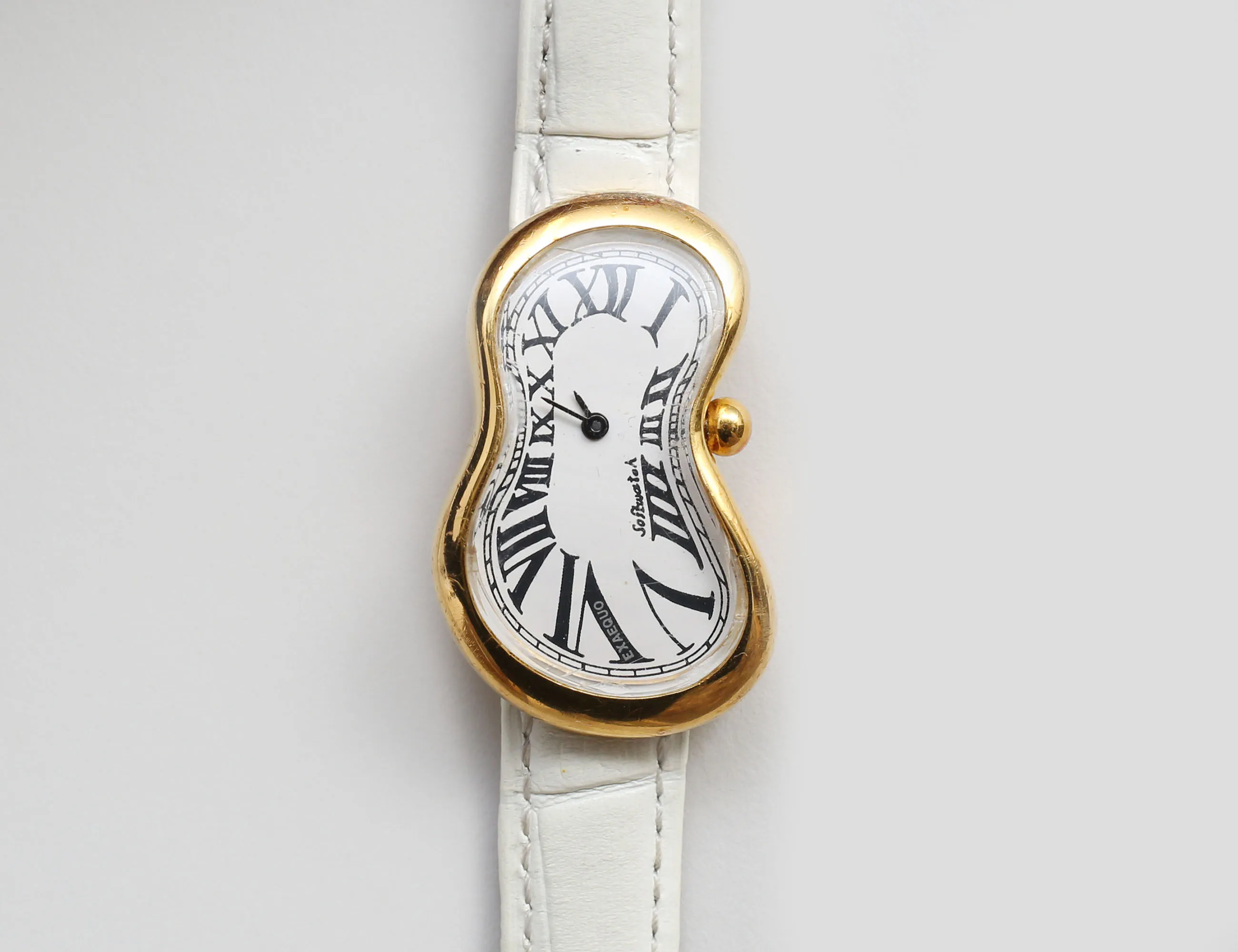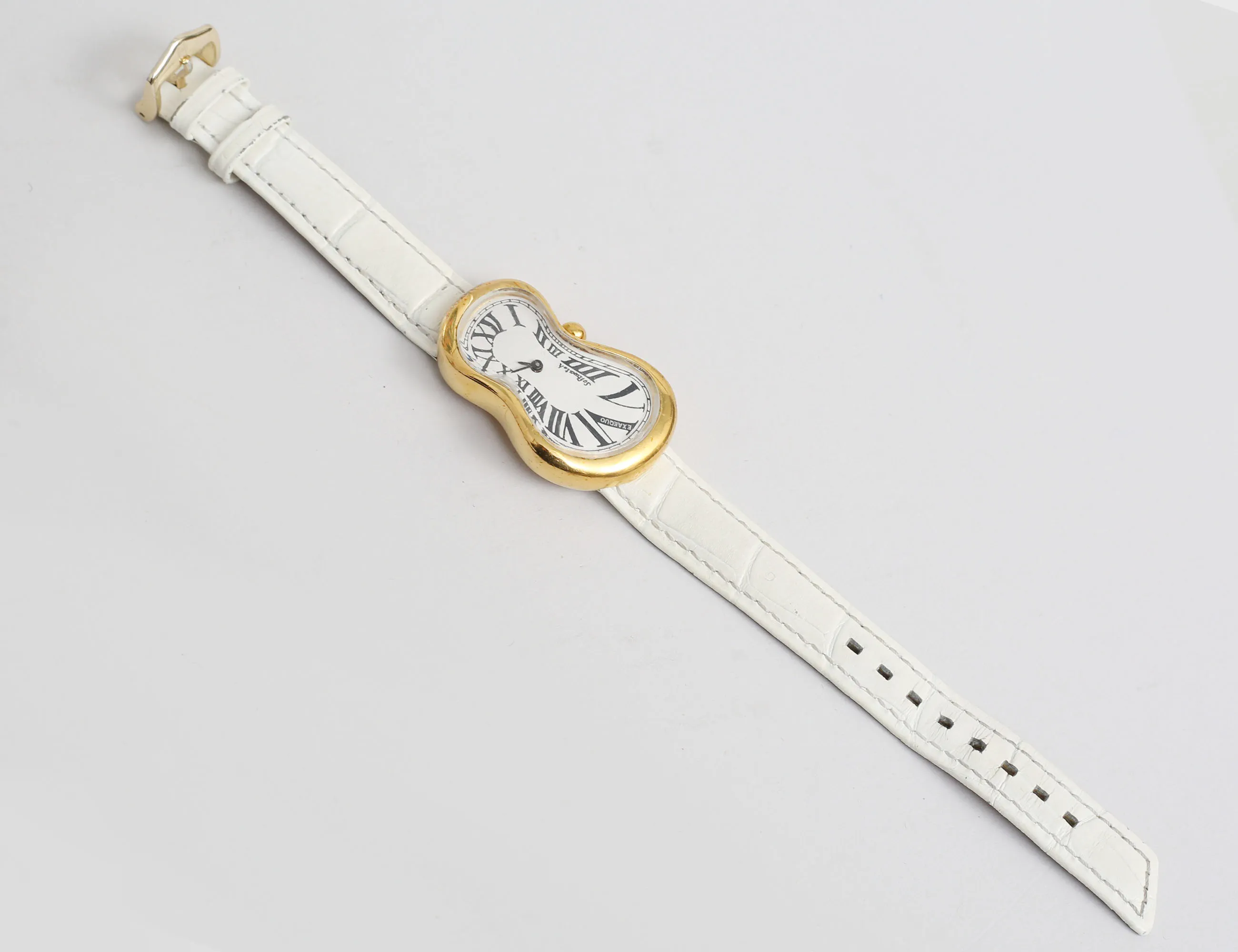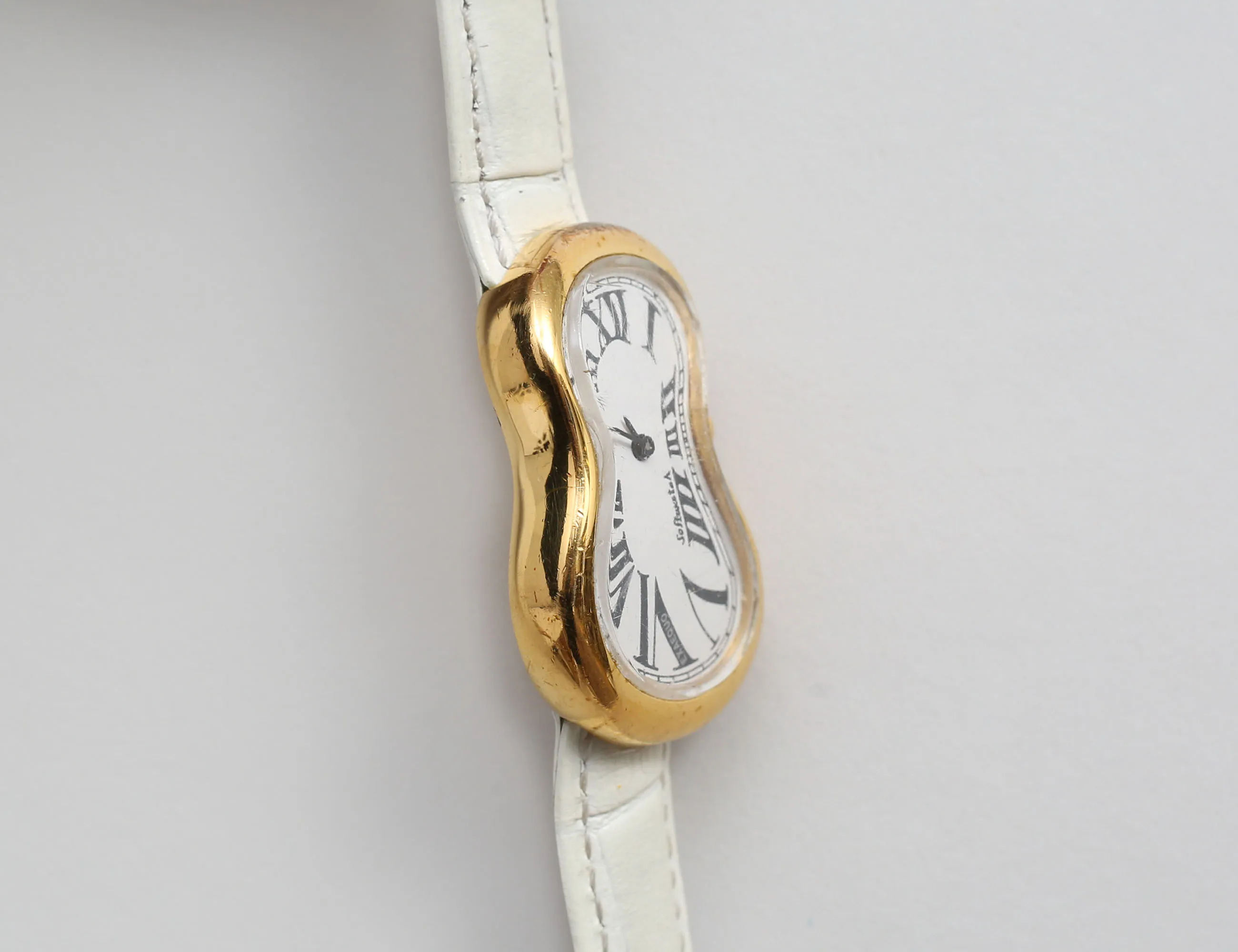 Softwatch 1990-tal, quartz, guldpläterad, vitt läderarmband ej original, del av original medföljer, originalbox samt broschyr (bruksslitage)