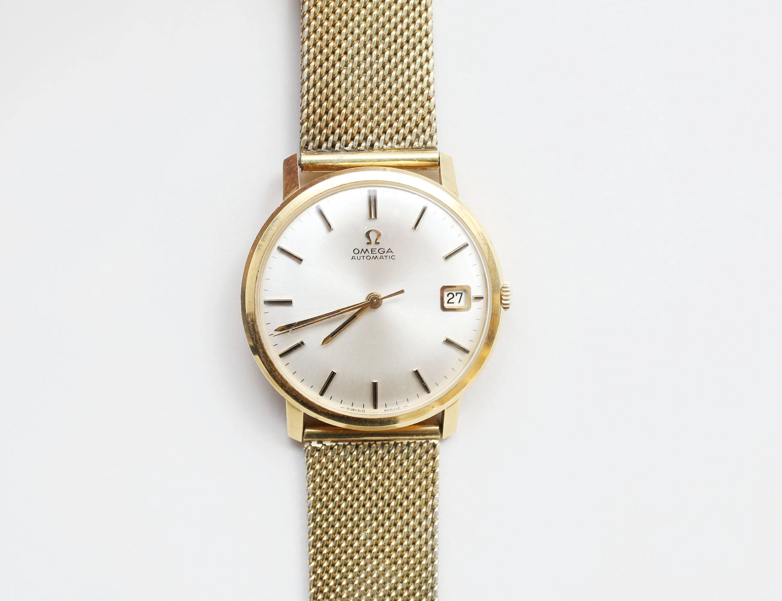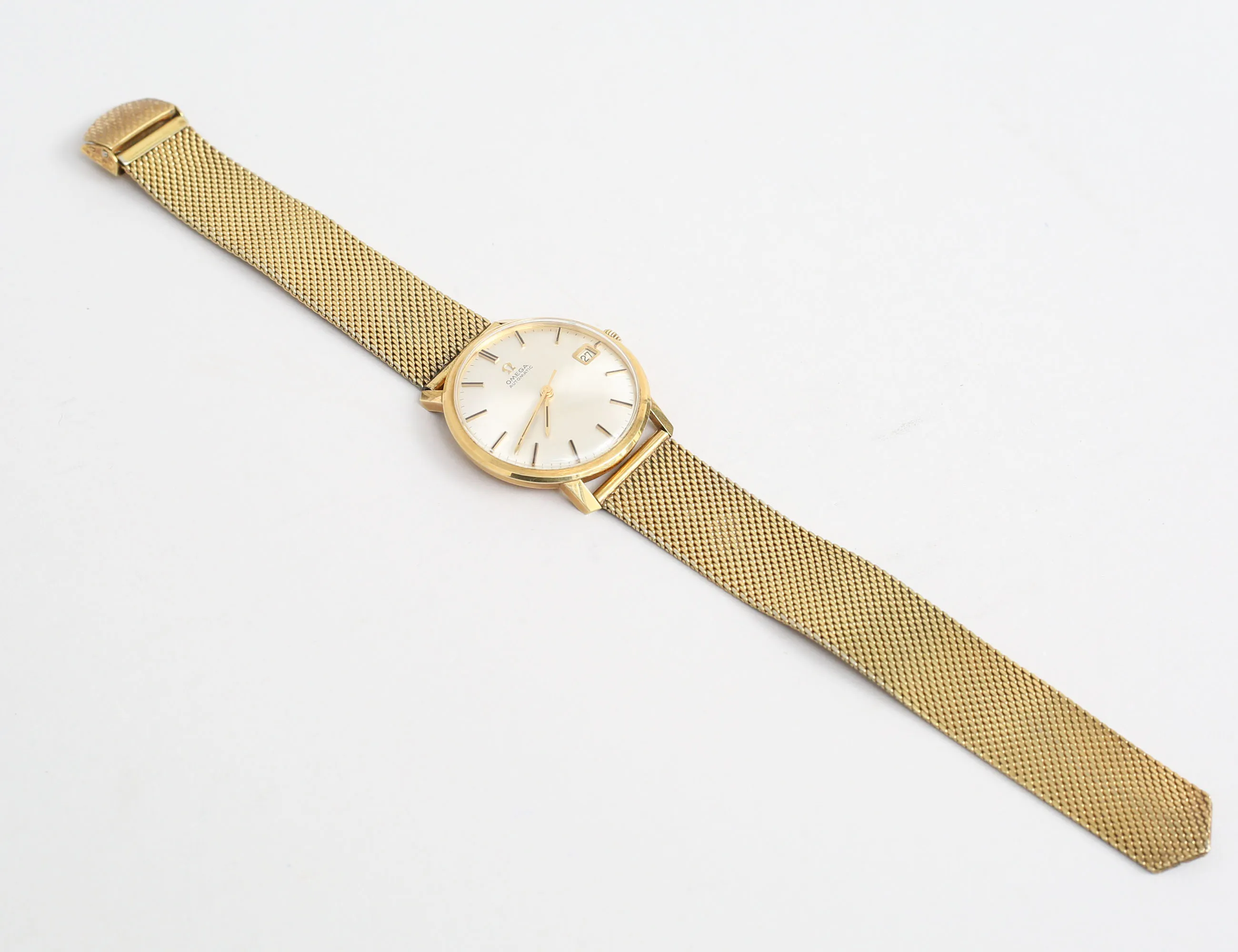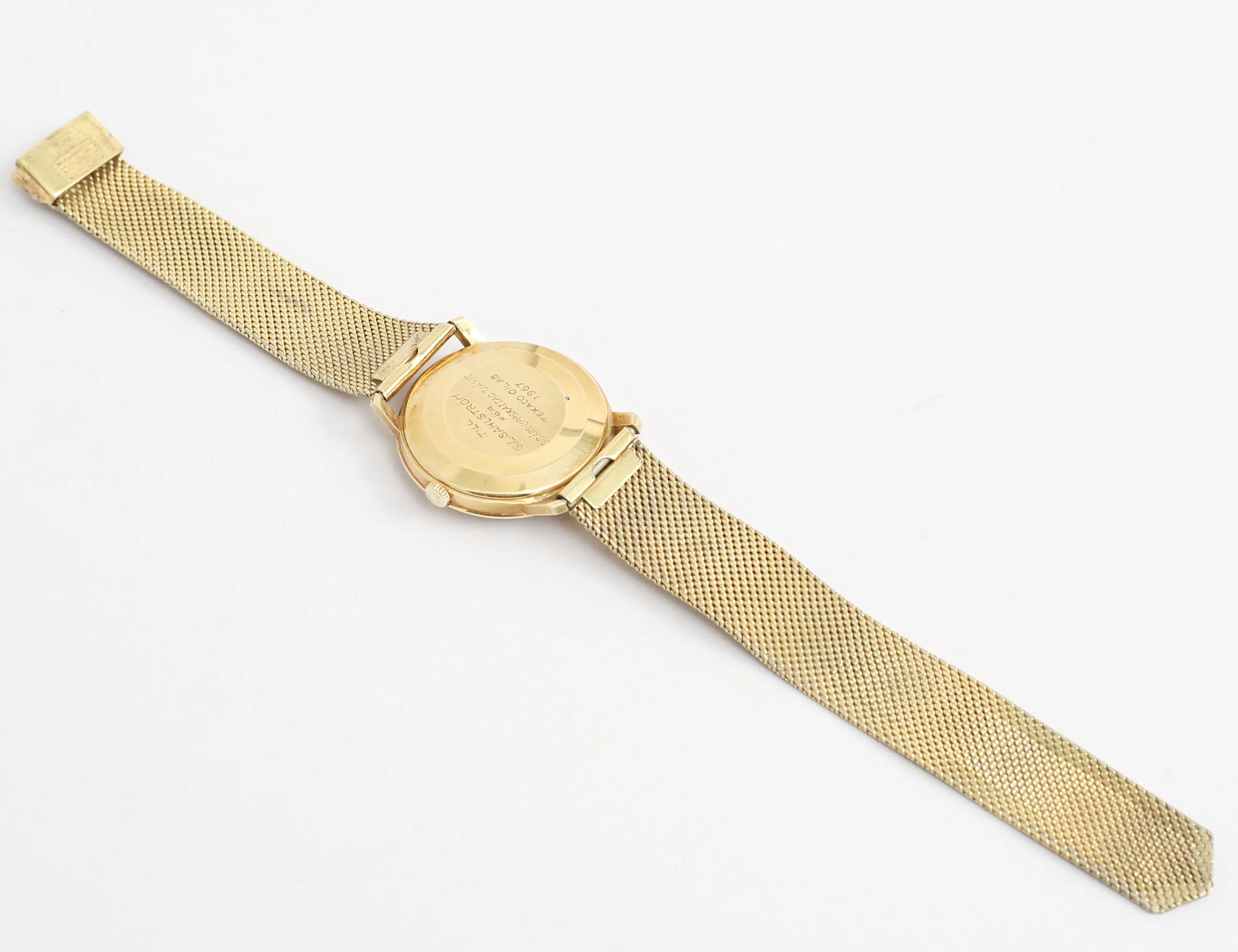boetten 18k, diameter 34 mm., safirglas, ljus urtavla med datumvisning, länk i gulddoublé, fungerar vid katalogiseringstillfället (bakboett med gåvogravyr)