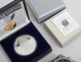 36x36mm., fungerar vid katalogiseringstillfället, dag, datum och sekundvisning (bruksslitage), Seiko Kinetic Titanium, diameter 41mm., ej funktionstestad, korta armband på båda, mynt och pin sterlingsilver vikt 28 gram medföljer (4)