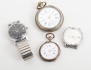 Zenith Automatic 35mm., stål, ej fungerande, Seiko Diashock Selfdater, stål, fungerar vid katalogiseringstillfället (smärre bruksslitage), fickur Archimedes silver, 51mm., fungerar vid katalogiseringstillfället (urtavla med hårspricka), fickur silver, 36mm., ej fungerande