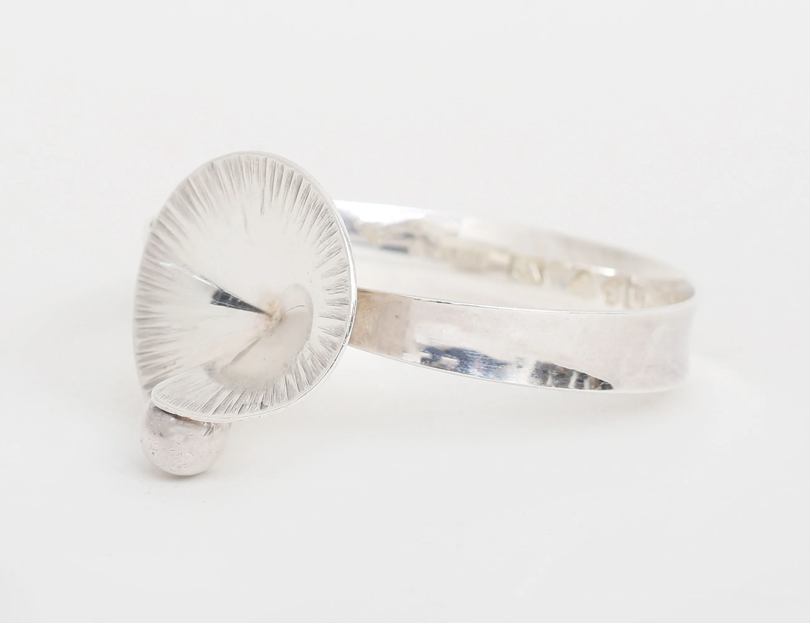 Alton Falköping 1972, ovansidan med graverad öppen rundel samt kula, armringen med expanderande konkav form, invändigt mått 25x6
