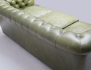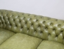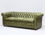 3-sits chesterfieldmodell 1960/70-tal, olivgrön skinnklädsel, djuphäftad med knappar, bakre ben med hjul, etikettmärkt, höjd 70, bredd 200, djup 90 (bruksslitage, smärre fläckar)