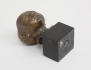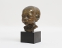 skulptur i form av barnhuvud, brons, signerad 1948-51, 3/5, gjutarstämpel Cire Valsuani Perdue, monterad på svart stensockel, höjd 17,5