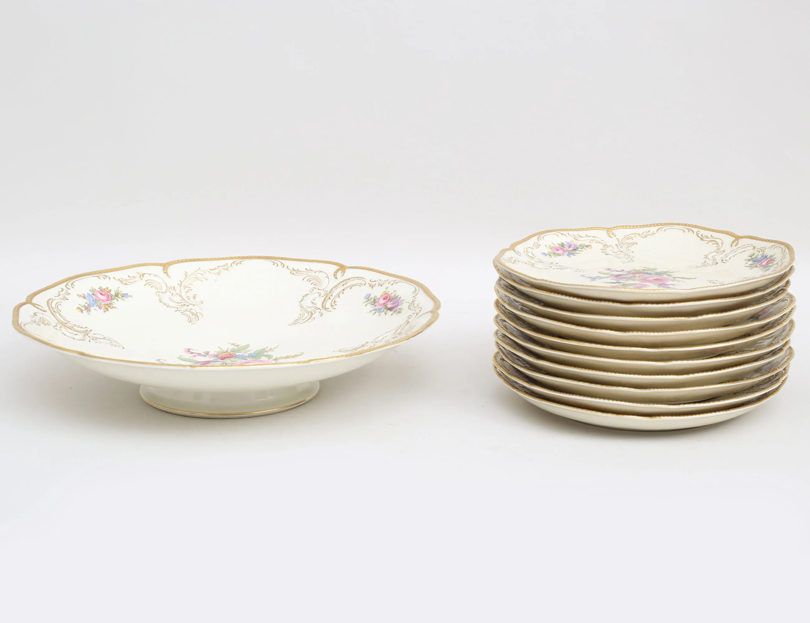 polykrom blomsterdekor samt förgylld, höjd 6, diameter 19/29 (11)