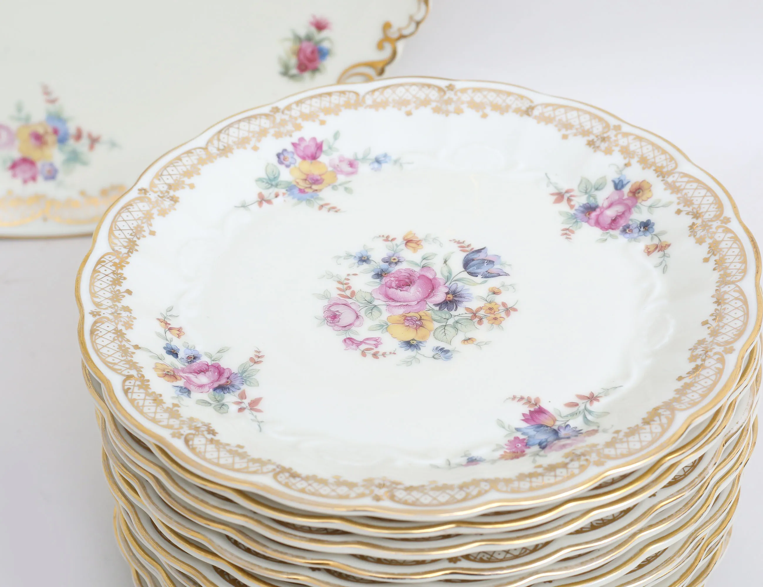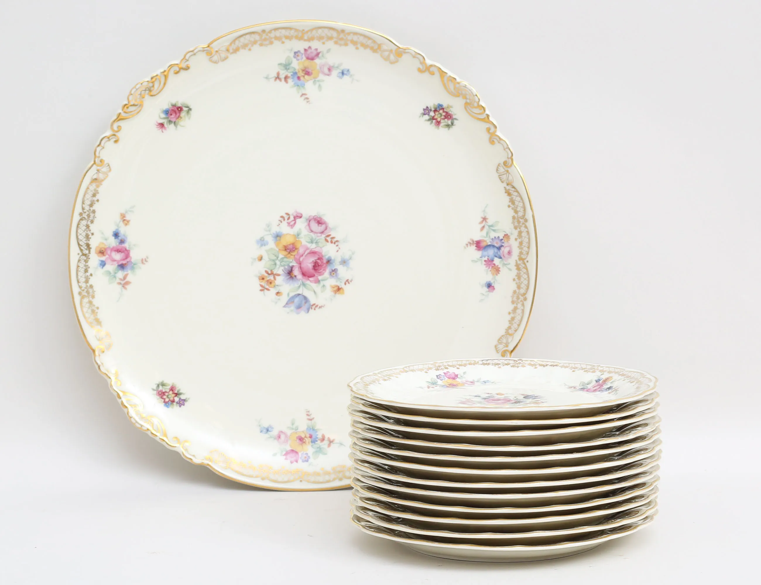 179. Assietter 12 stycken samt fat