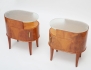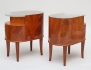 1 par sängbord Swedish Modern 1900-talets mitt, pyramidmahogny, ovala fristående, en skåpdörr med handtag i mässing, kraftiga frostade glasskivor, märkta SMF (Svenska Möbel Fabrikerna), höjd 51, bredd 36x30