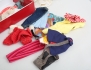 Mattel 1960-tal, röd garderob med tillbehör och kläder, flertalet original, garderobens mått 31x27 (bruksslitage, rostiga beslag)