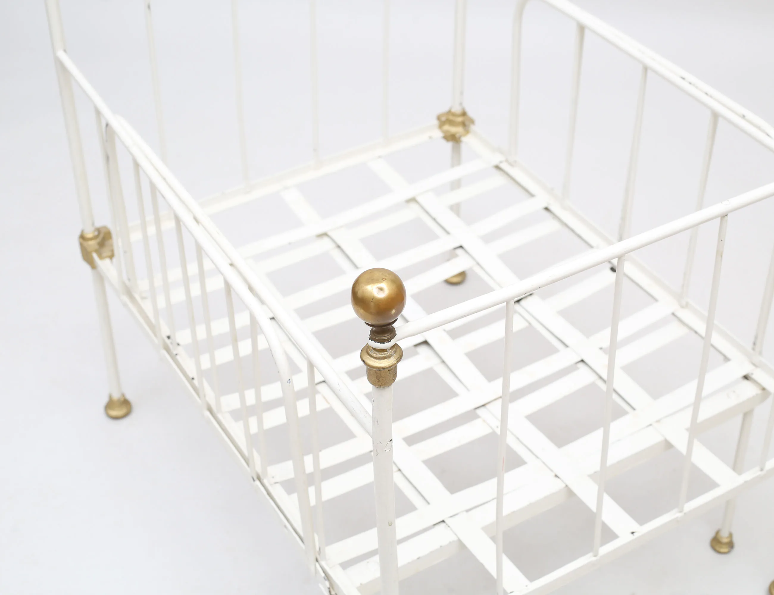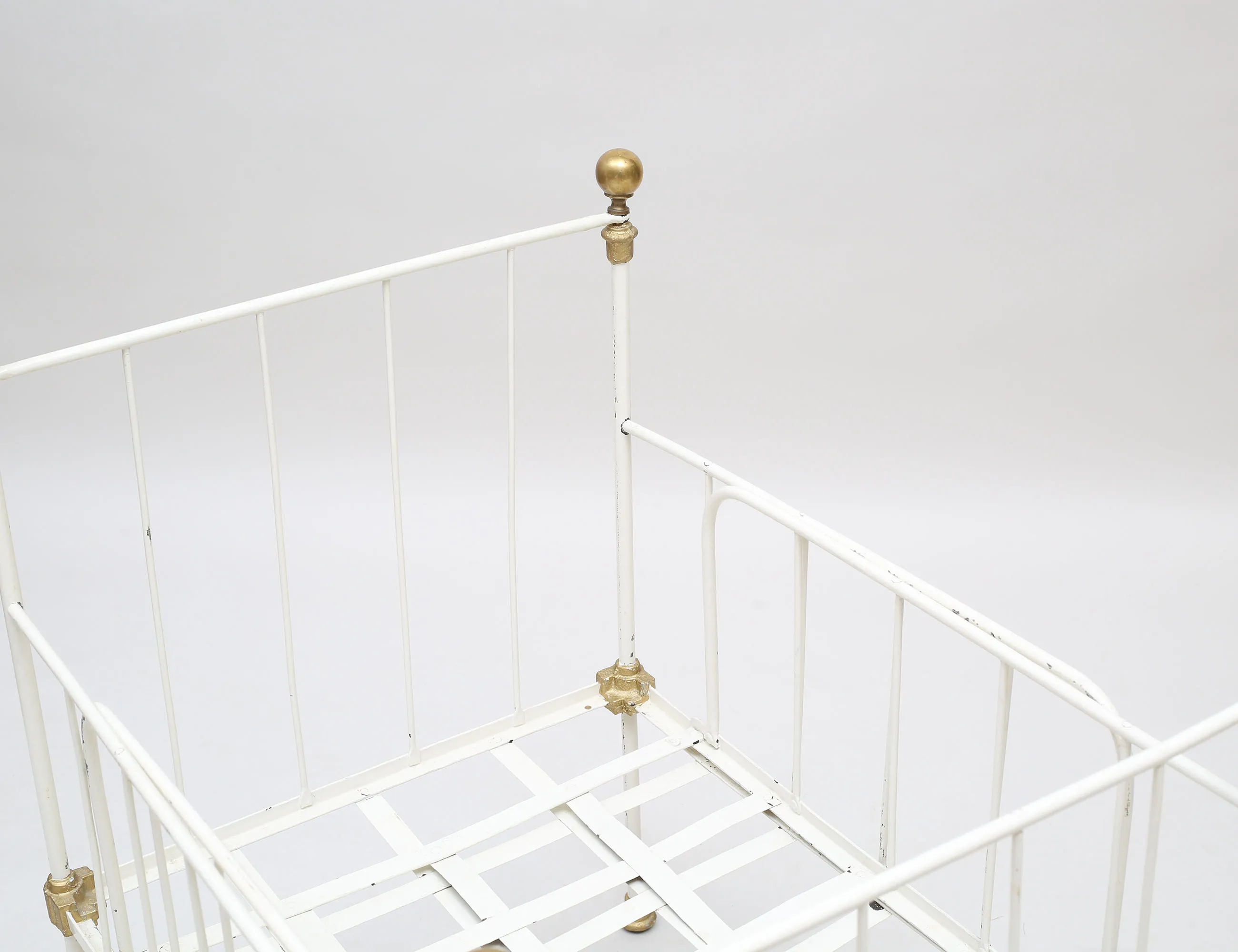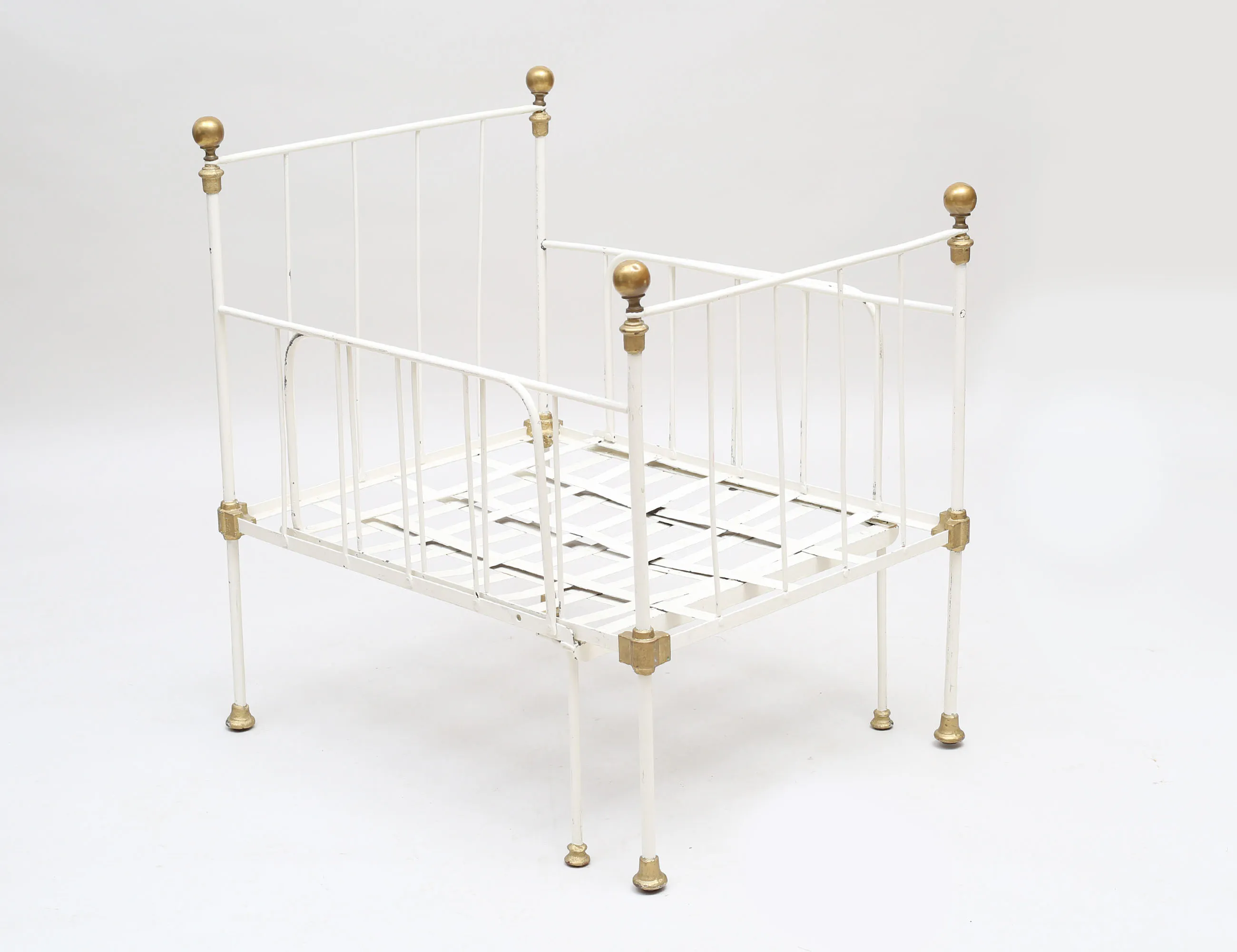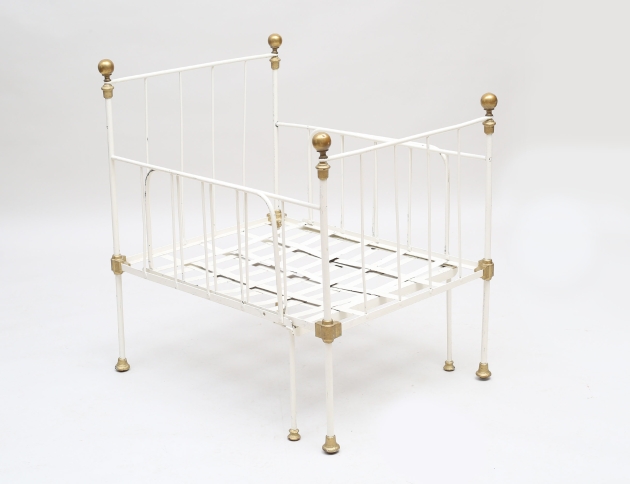 bemålad järn/järnplåt, förgyllda detaljer, knoppar i mässing, utdragbar från 70-130 cm, höjd 85, bredd 62 (bruksslitage)