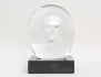skulptur "Headman", silverhuvud i glob av klarglas, signerad och numrerad 7176012, Limited Edition 2/25, monterad på kvadratiskt granitsockel