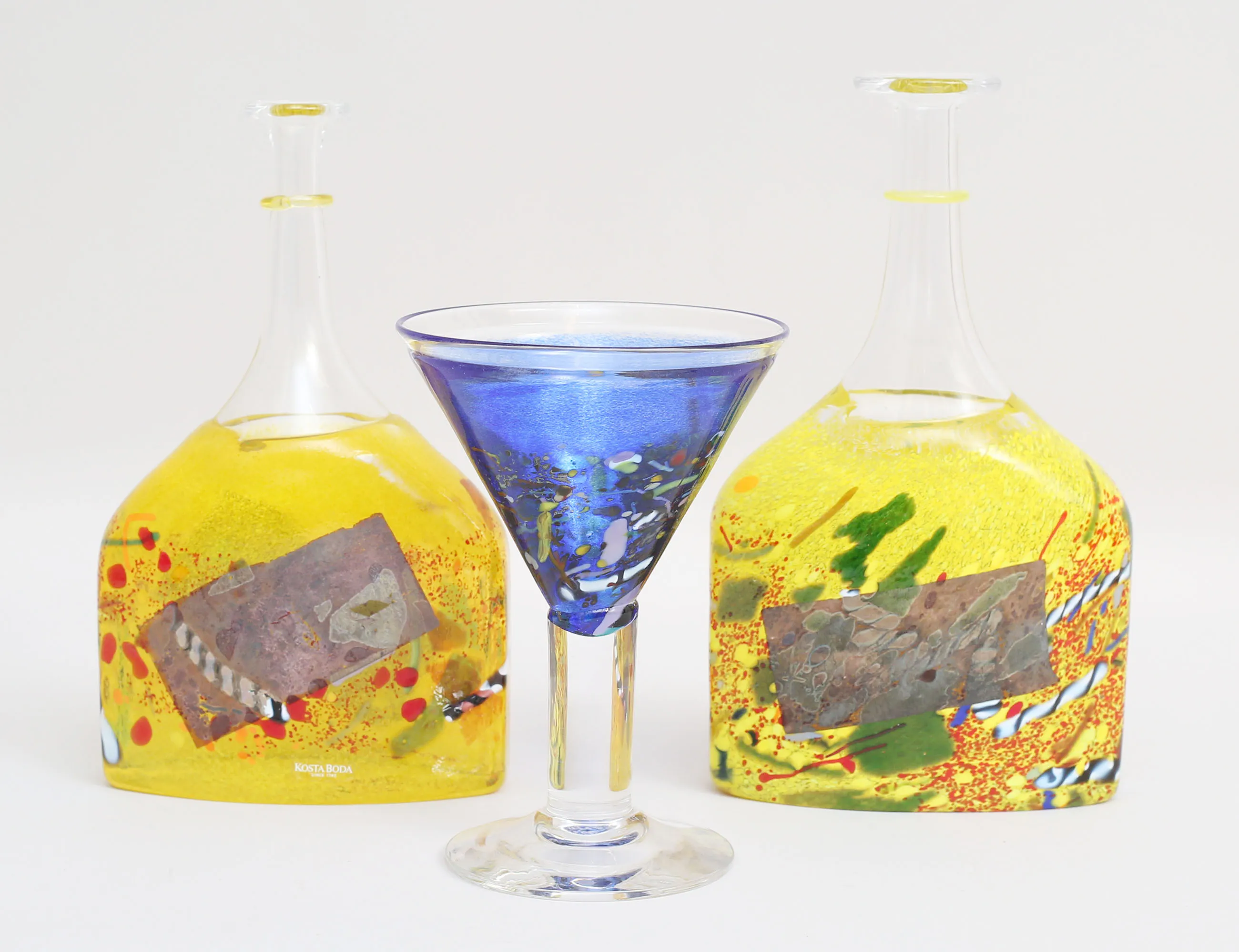 flaska/vas "Satellite" 2 stycken, den mindre signerad Artist Collection 89252, den större med tillverkningsdefekt, höjd 24/23, pokalglas "Satellite", Artist Collection 99372, höjd 17 (3)