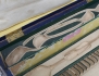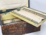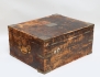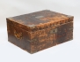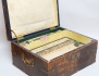 läderklätt med beslag i mässing, etikettmärkt JF Rosensten (?) Stockholm, invändigt klätt med sämskskinn, 3 bestickbrickor, lock med spår av lacksigill, höjd 25, bredd 52x42 (bruksslitage, nyckel saknas)