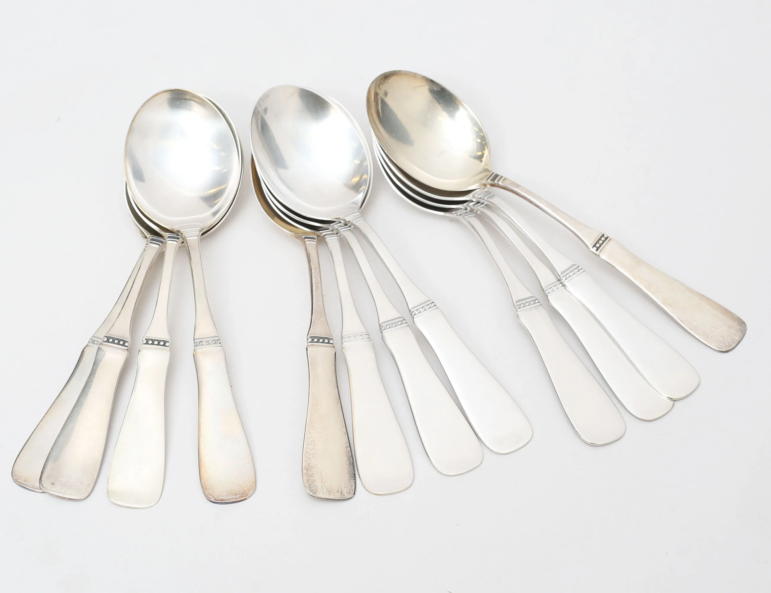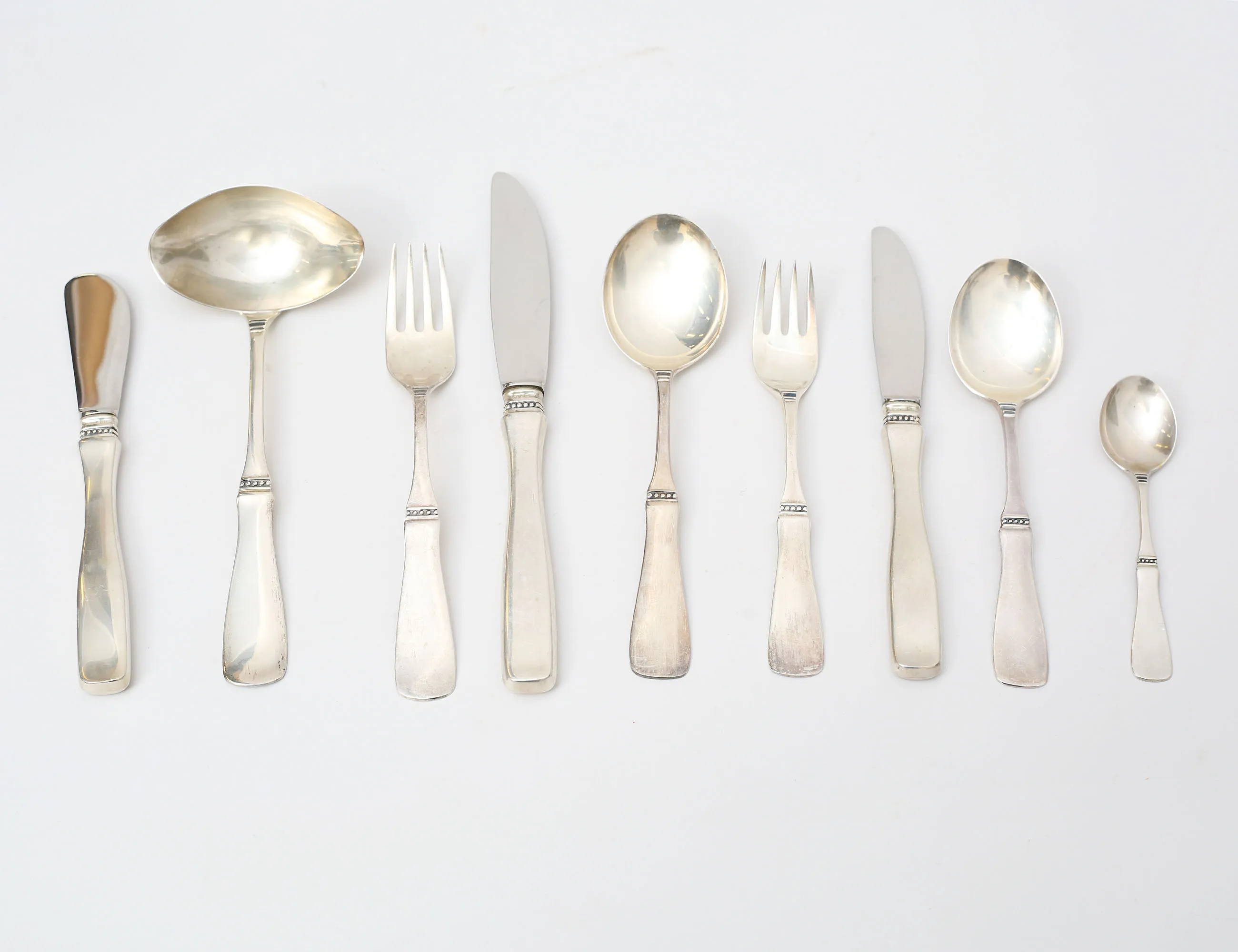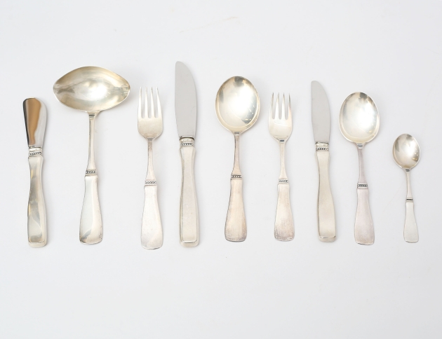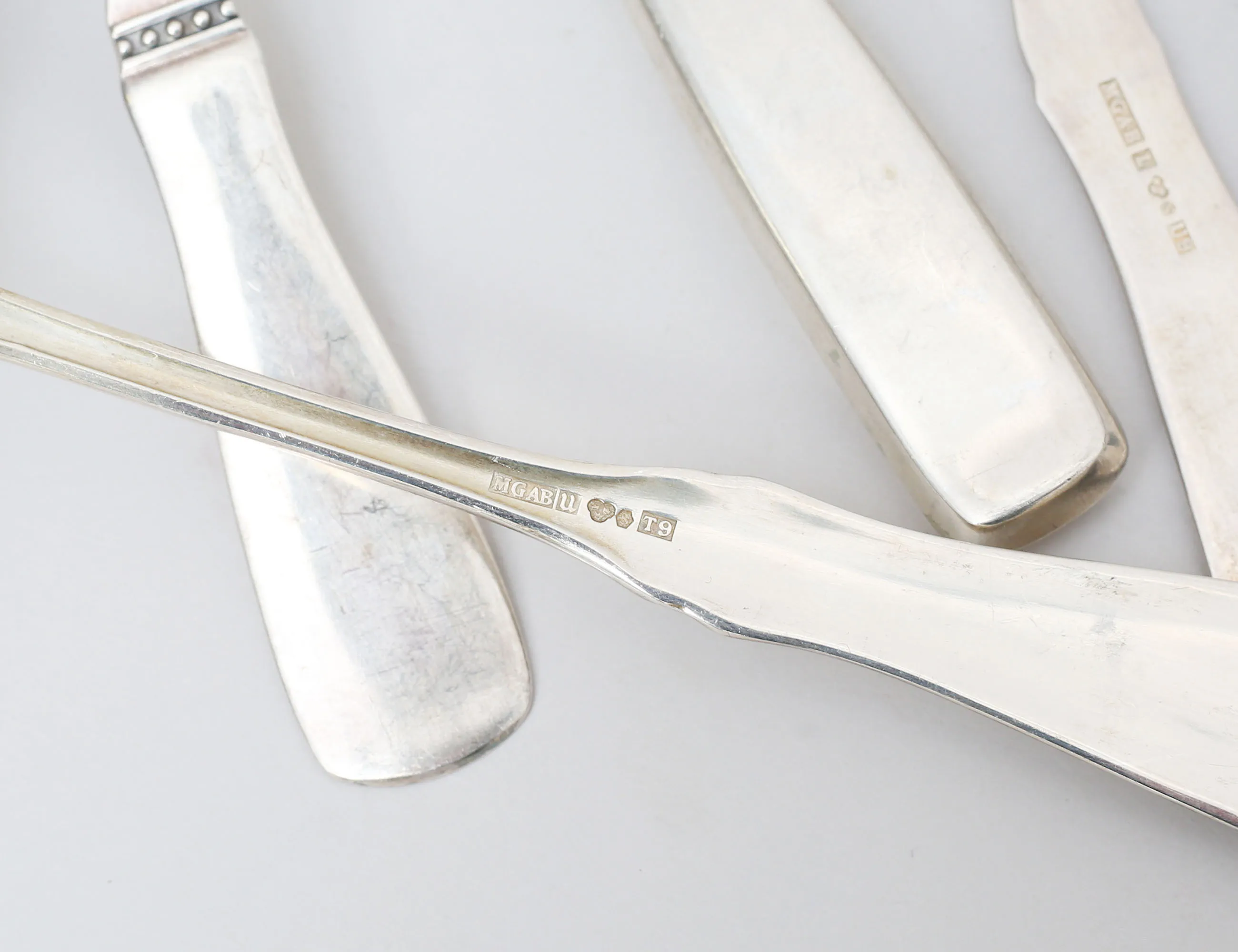 Markström Lidköping 1960/70-tal samt 2011, modell "Uppsala", 12 matgafflar, 12 matknivar, 12 matskedar, 12 förrättsgafflar, 12 förrättsknivar, 12 dessertskedar, 3 kaffeskedar, slev samt smörkniv, vikt 1773 gram exklusive knivar, längd 11-20