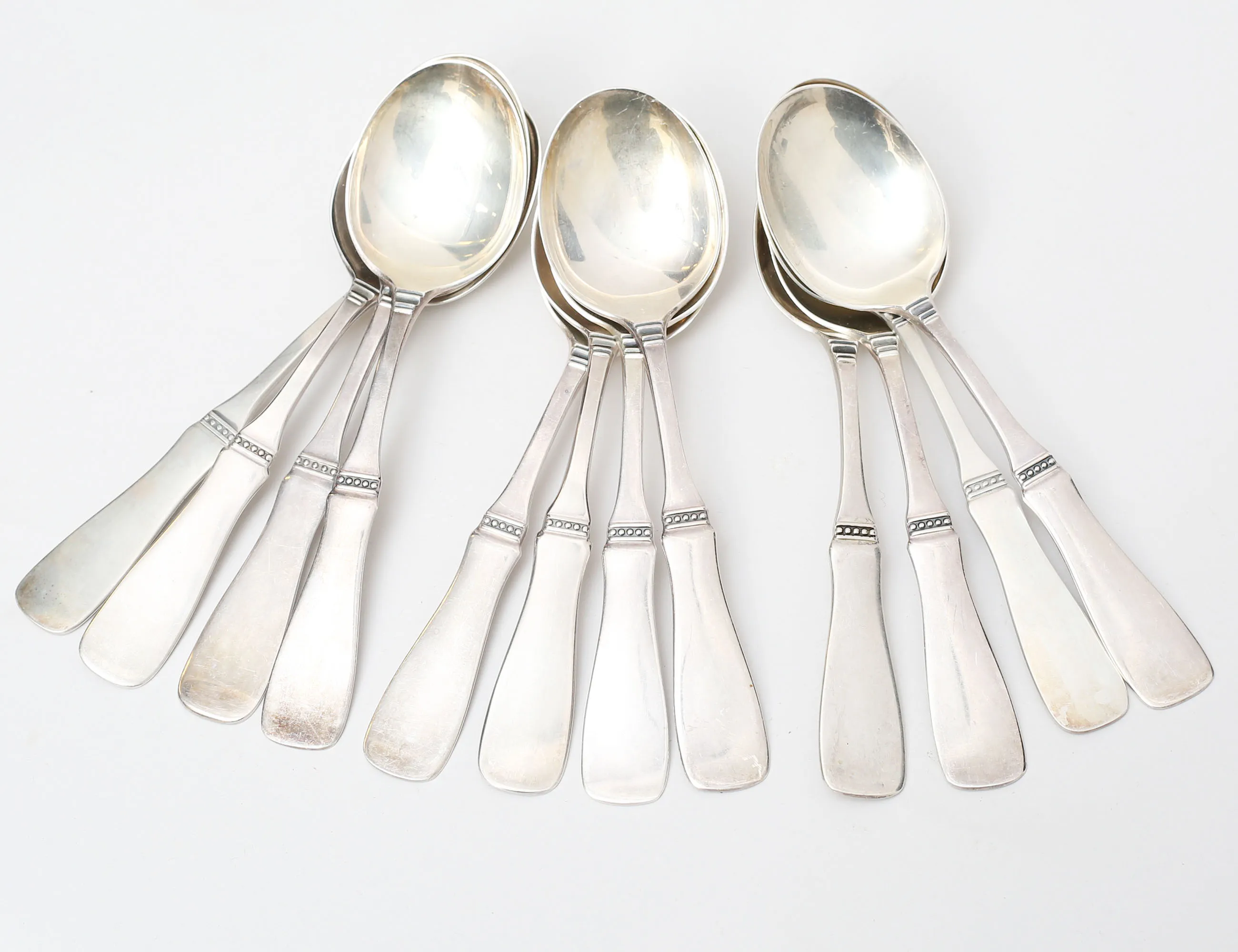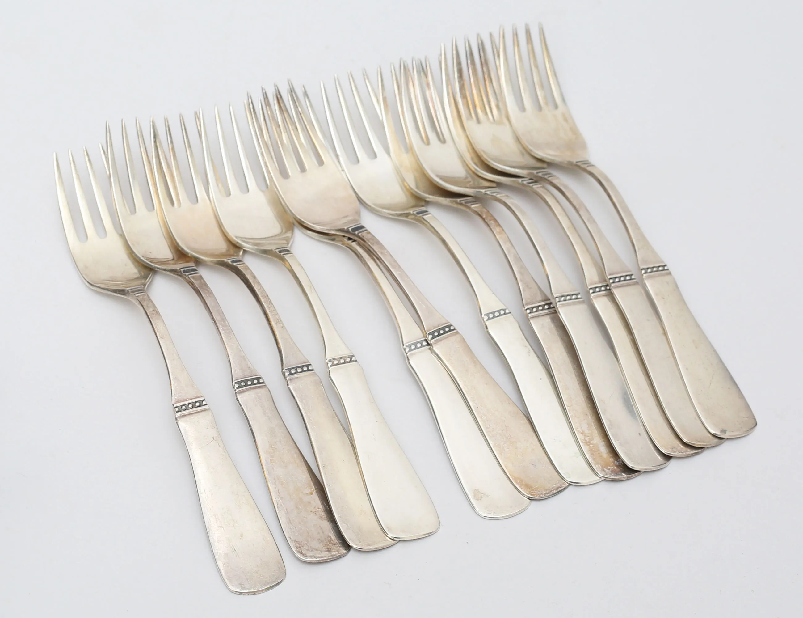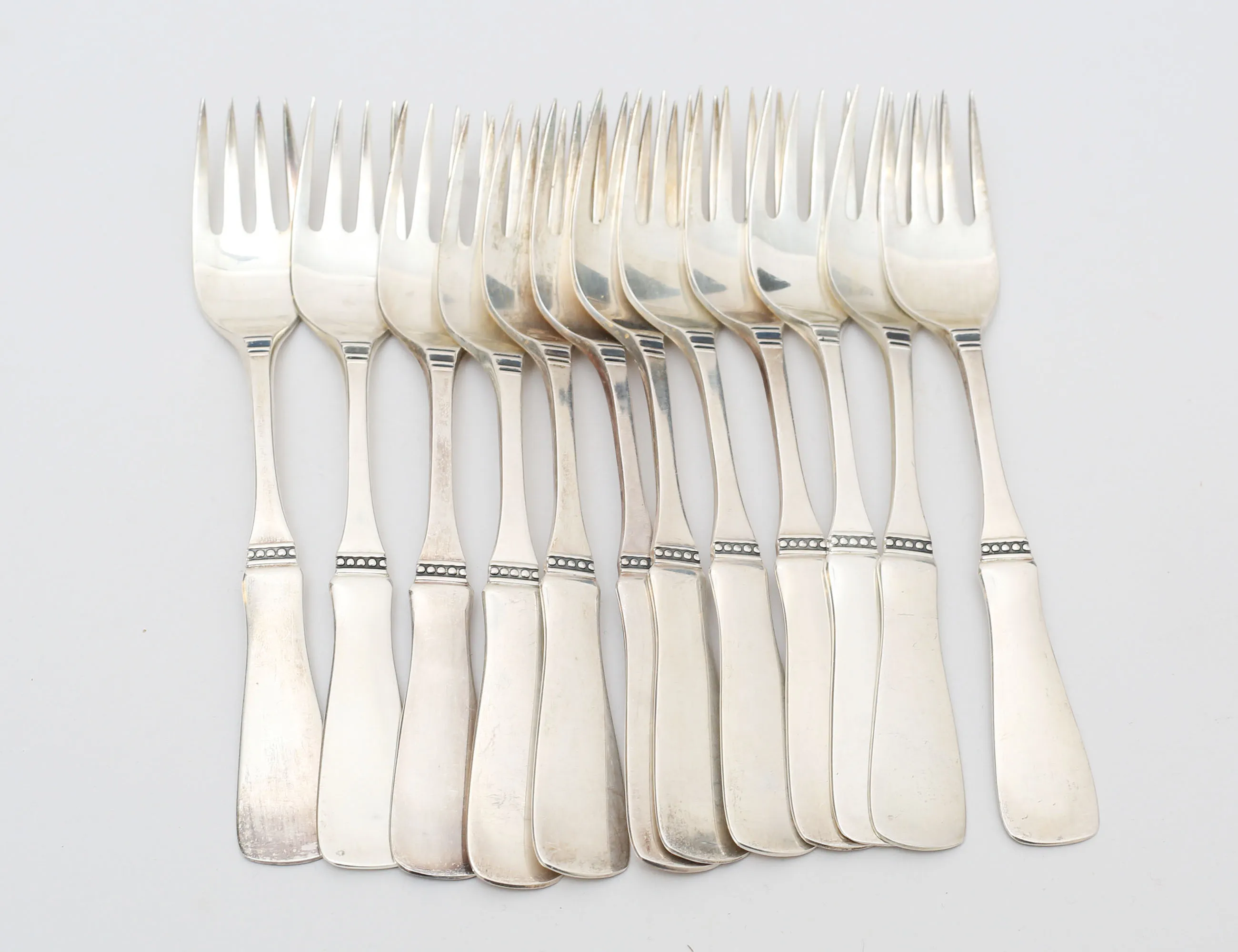 Markström Lidköping 1960/70-tal samt 2011, modell "Uppsala", 12 matgafflar, 12 matknivar, 12 matskedar, 12 förrättsgafflar, 12 förrättsknivar, 12 dessertskedar, 3 kaffeskedar, slev samt smörkniv, vikt 1773 gram exklusive knivar, längd 11-20