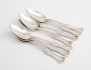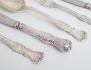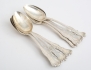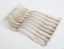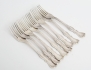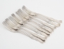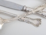 77 delar sterlingsilver, CG Hallberg Stockholm 1950/60-tal, 8 matgafflar, 8 matknivar, 8 skedar, 8 bordsgafflar, 9 bordsknivar, 7 skedar, 8 förrättsgafflar, 7 förrättsknivar, 8 teskedar, 6 kaffeskedar, vikt 2786 gram exklusive knivar