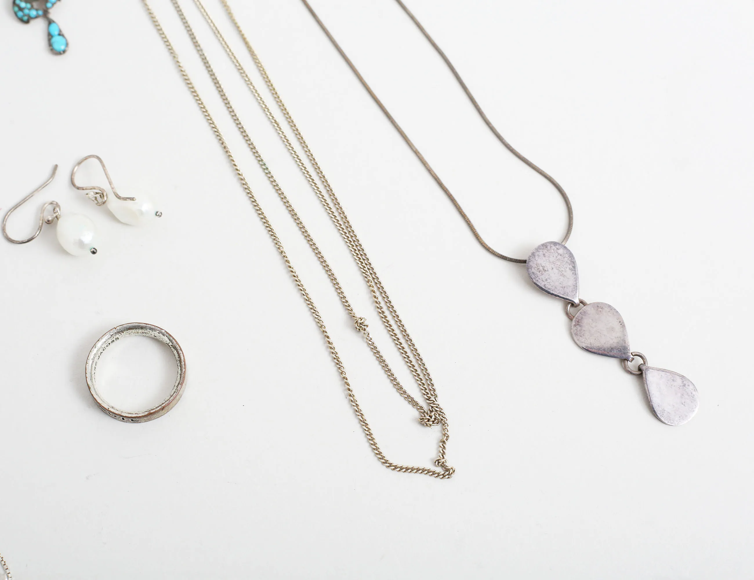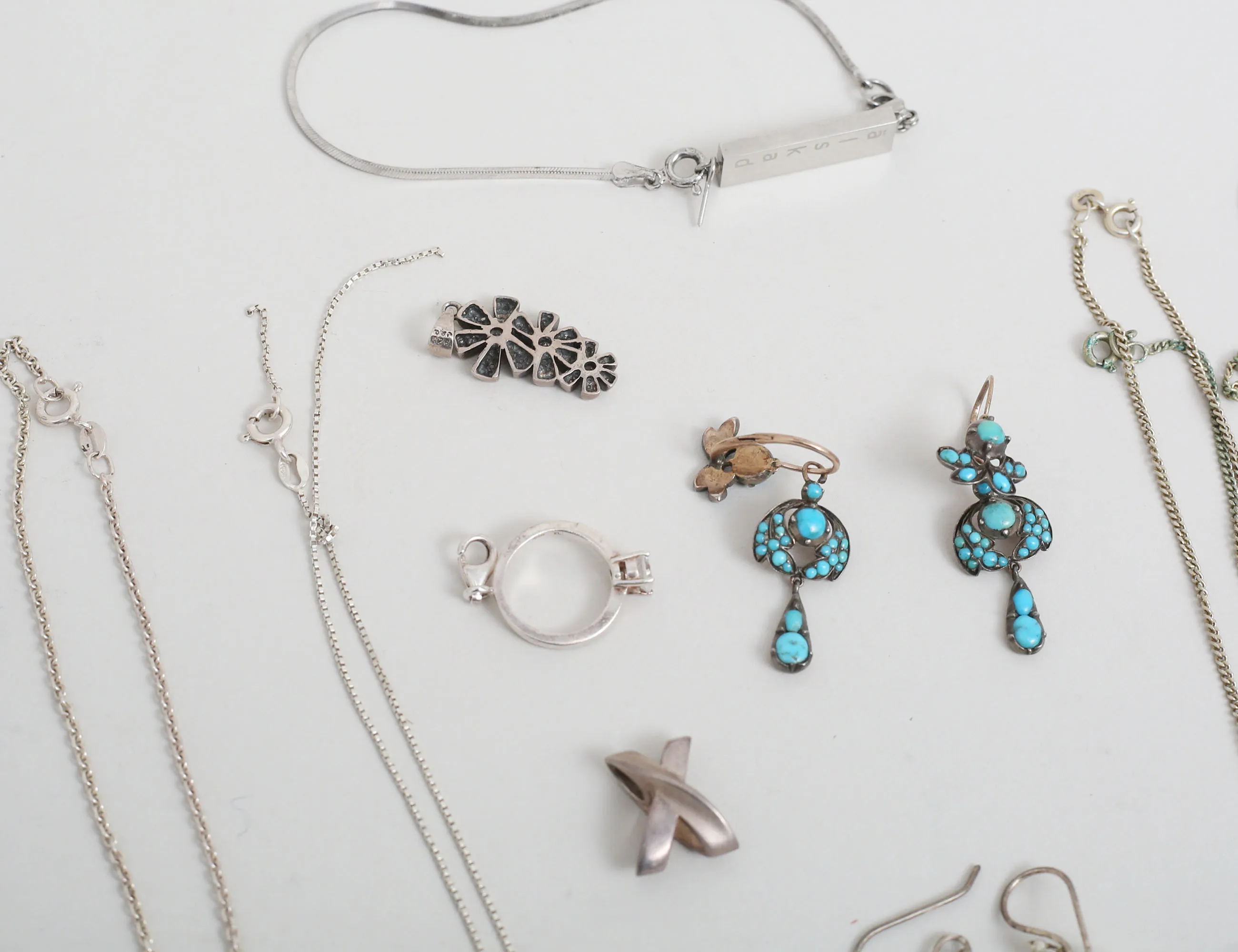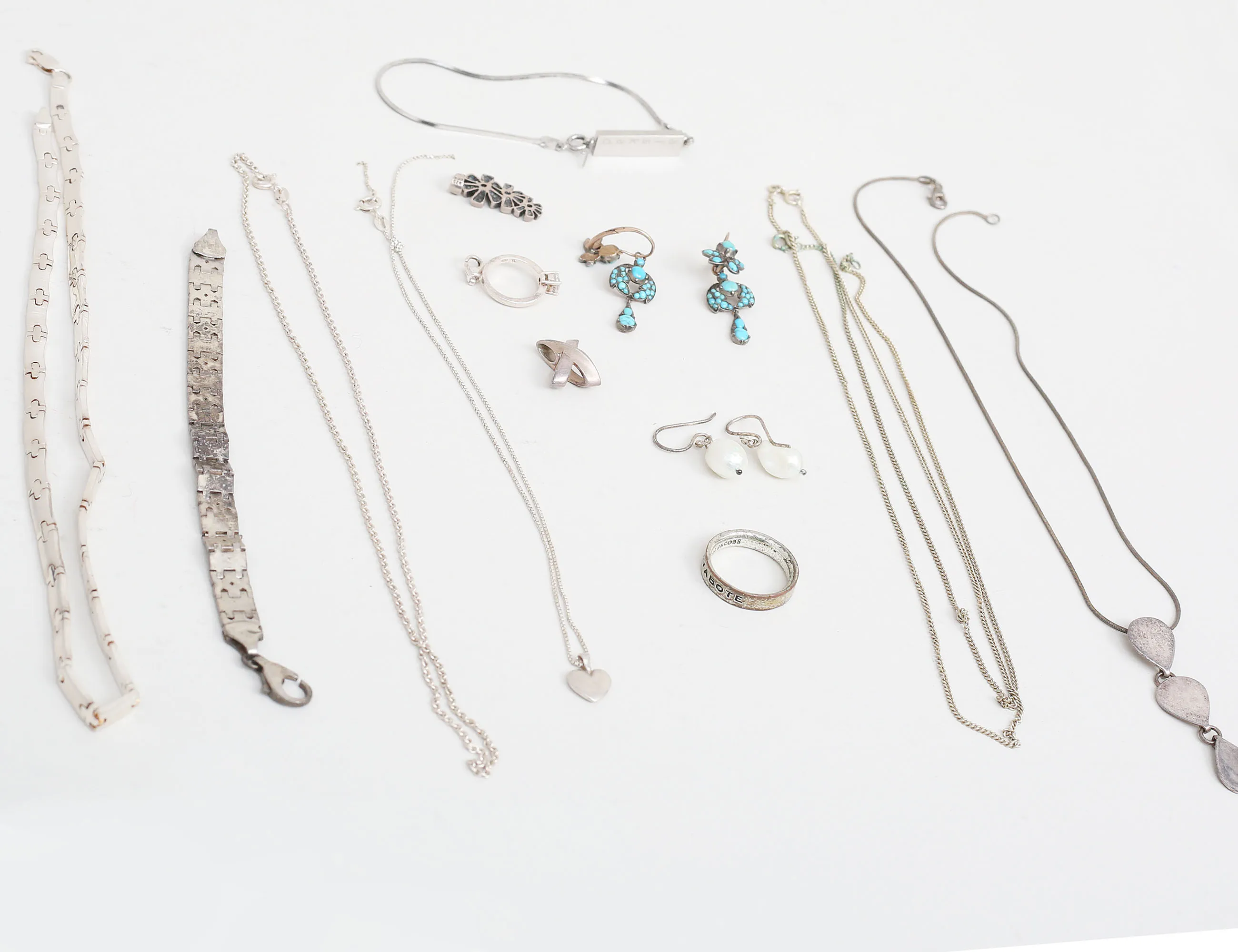 bla ring/hänge Thomas Saabo, halscollier, smyckeskedjor silver, amband "älskad fröken", örhängen, hängen med mera, ring Marc Jacobs "Serva Me Servabote" (ej silver)