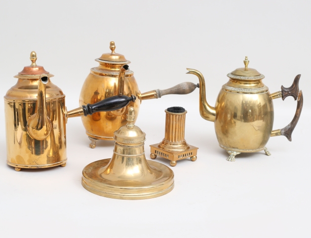 tidigt 1900-tal, mässing, höjd 14/10, 3 serveringskannor c.1900, mässing, Sundsvall/Eskilstuna, höjd 20-21