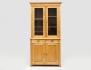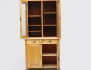 vitrindel med 6 hyllplan, nederdel med två lådor och dörrpar ed ett hyllplan, björk, gjutna beslag i mässing, 2 delad, höjd 226, bredd 112, djup 53