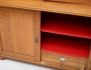 ek, vitrindel med 4 hyllplan, underdel med dörrpar med bakomliggande lådor och hyllplan, 2 delar, höjd 220, bredd 129, djup 50