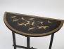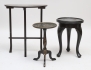 c.1900 och senare, ett med målad dekor av pagod i landskap, tregrenad fot, höjd 60, diameter 30, ett halvmåneformat, lackarbete, höjd 70, bredd 60, ett på tre ben, svärtat, höjd 50