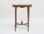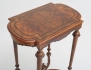 valnöt och valnötsrot, svart banddekor, profilerad skiva, kopplade ben med svarvad dekor, fristående, höjd 75, bredd 57x36