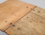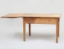 tidigt 1800-tal, furu, ena kortsidan med klaff, andra med ursprunglig lång låda, raka nedåt avsmalnande ben med kannelyr, höjd 77, bredd 75, längd 114 (179)