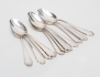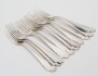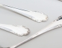 34 delar,1980-tal, 11 gafflar, 11 skedar, 11 knivar samt såsslev, vikt 1046 gram exklusive knivar, längd 18-21