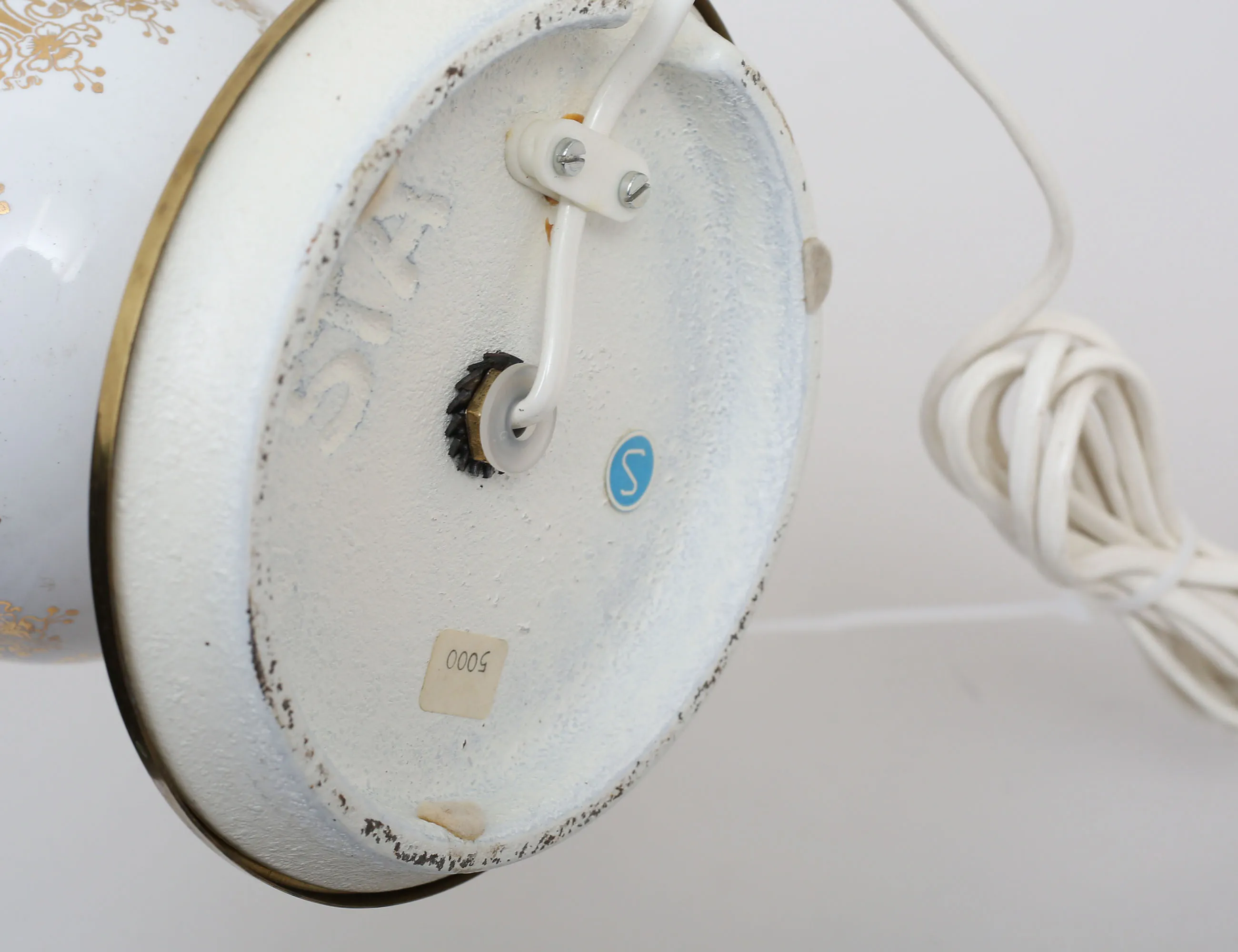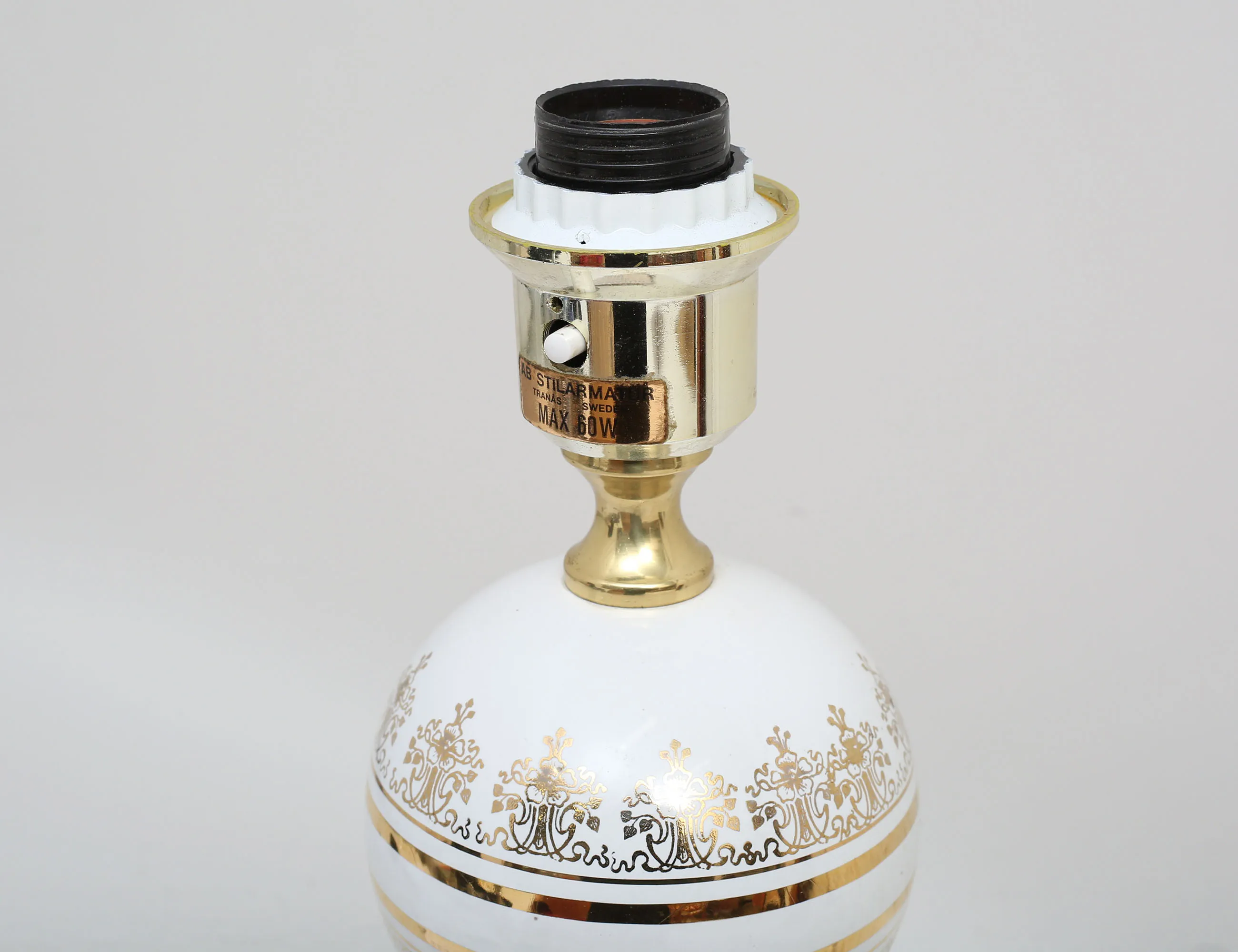 AB Stilarmatur Tranås, vitemaljerad och förgylld metall/mässing, etikettmärkt, höjd 40