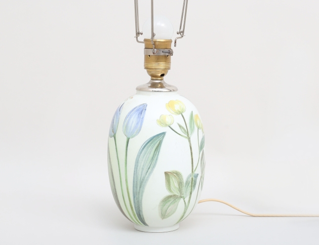 Rörstrand 1940-tal, stengods, polykrom blomsterdekor, signerad, höjd 28