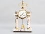 alabaster och mässing, urtavla med målade girlanger på emalj, höjd 39, redd 23 (emaljskada ytterkant)