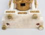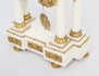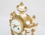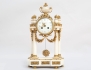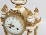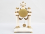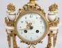 brännförgylld brons och mässing, vit carrarramarmor med rik ornamentik och brännförgylld brons, 5 stycken krönande blomsterurnor, urtavla i emalj, ornamenterad pendel med kvinnoansikte i relief, märkt Antide Janvier (1751- 1835) Paris, höjd 40, bredd 22 (obetydlig nagg på sockelns undersida)