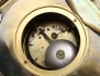 gjuten rikt ornamenterad dekor i  mässing av lejon, kvinnohuvuden, snäcka, lejontassar, urtavla med tablettsiffror i emalj, höjd 46, bredd 30
