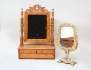 biedermeier, björk, tre lådor med dragknoppar i ben, höjd 56, bredd 39, bordsspegel 1900-talets första hälft, bemålat gjutgods, höjd 40 (2)