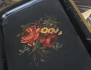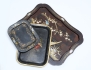 Japan lackarbete, förgylld dekor med pärlemor, 74x55, 2 brickor England 1800-tal, bemålad plåt med förgylld respektive polykrom dekor, 36x29, 51x37 (smärre slitage) (3)