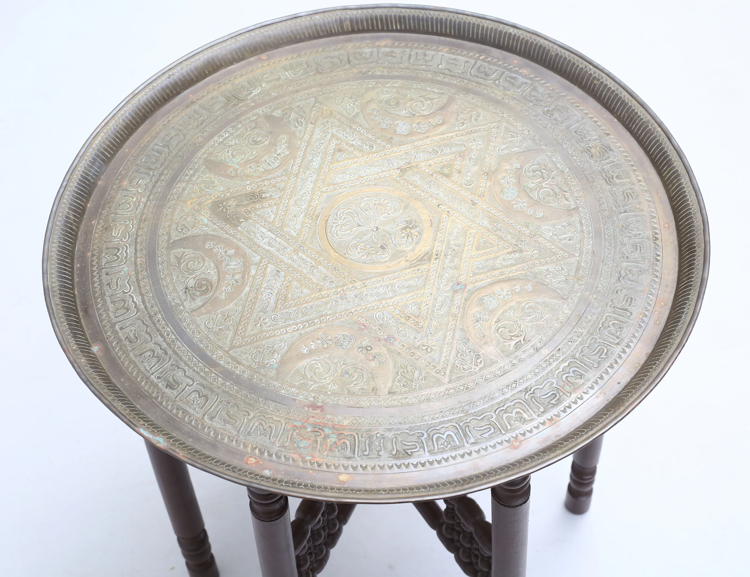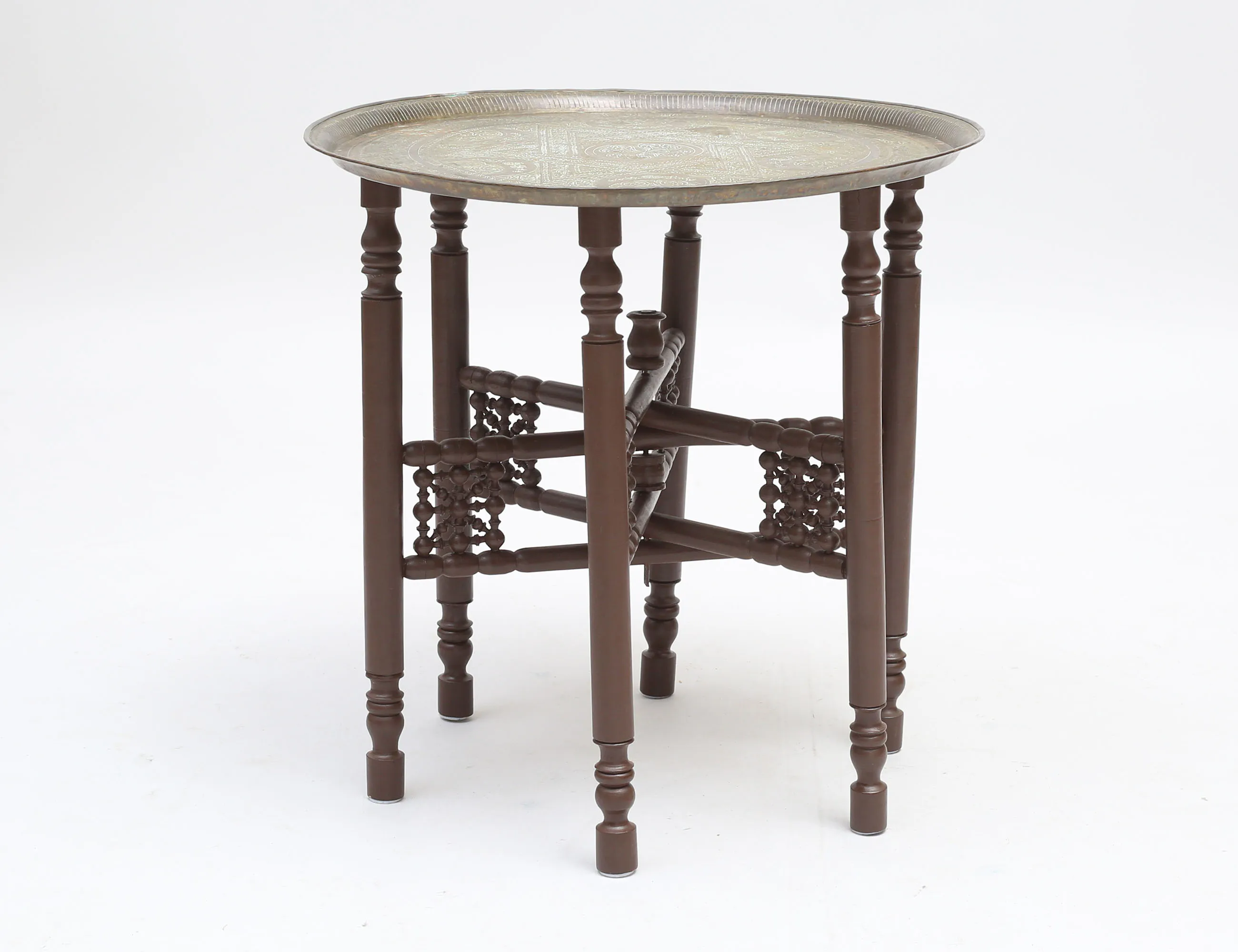 1900-talets andra hälft, skiva i mässing, benställning i bemålat och svarvat trä, höjd 59, diameter 69