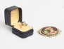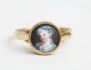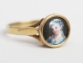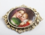 förgyllt silver, infällda porslinsmålningar, brosch c.1900, längd 5,5, ringens målning 1800-tal, med stämplad Borås 1951, storlek 17,5/55 (2)