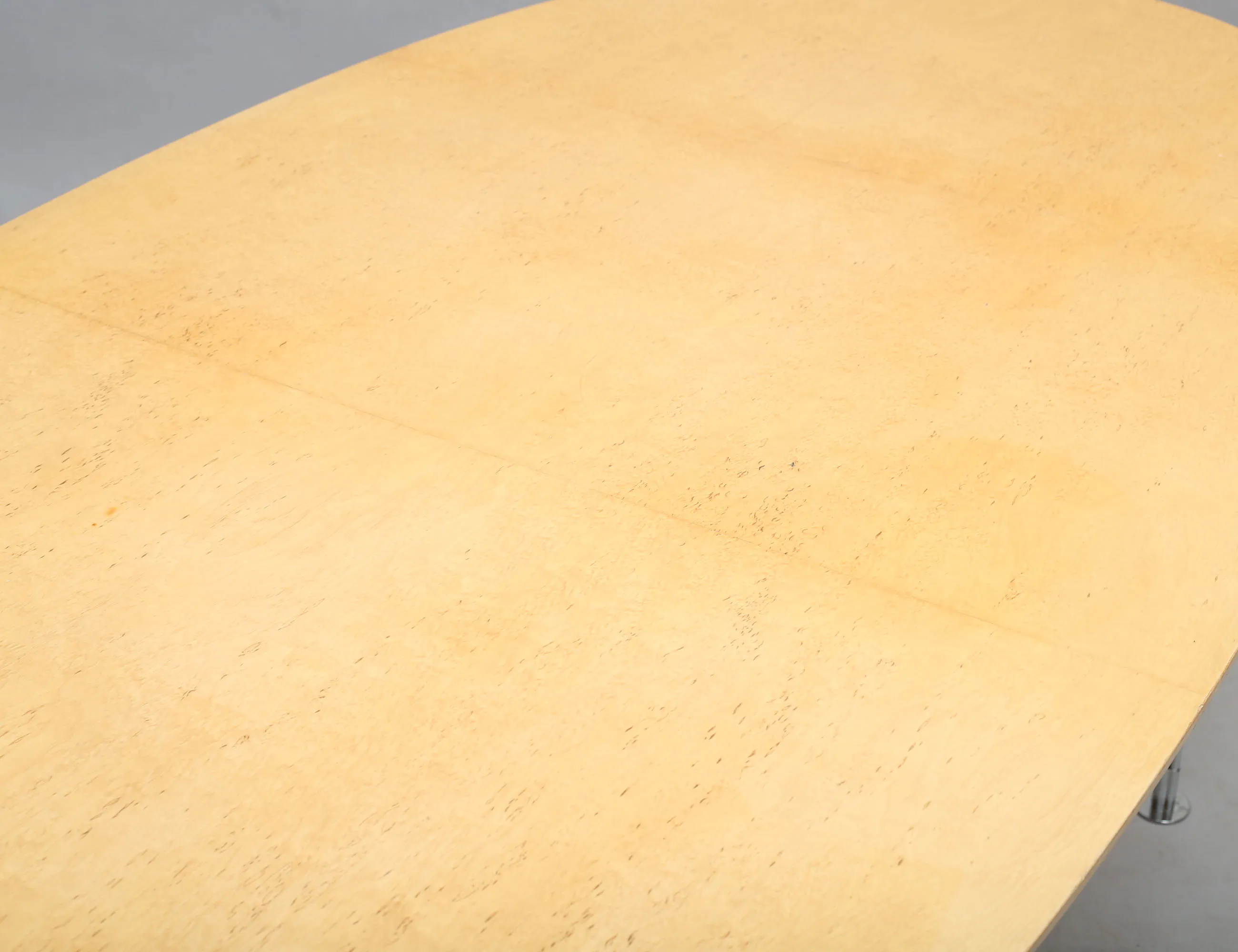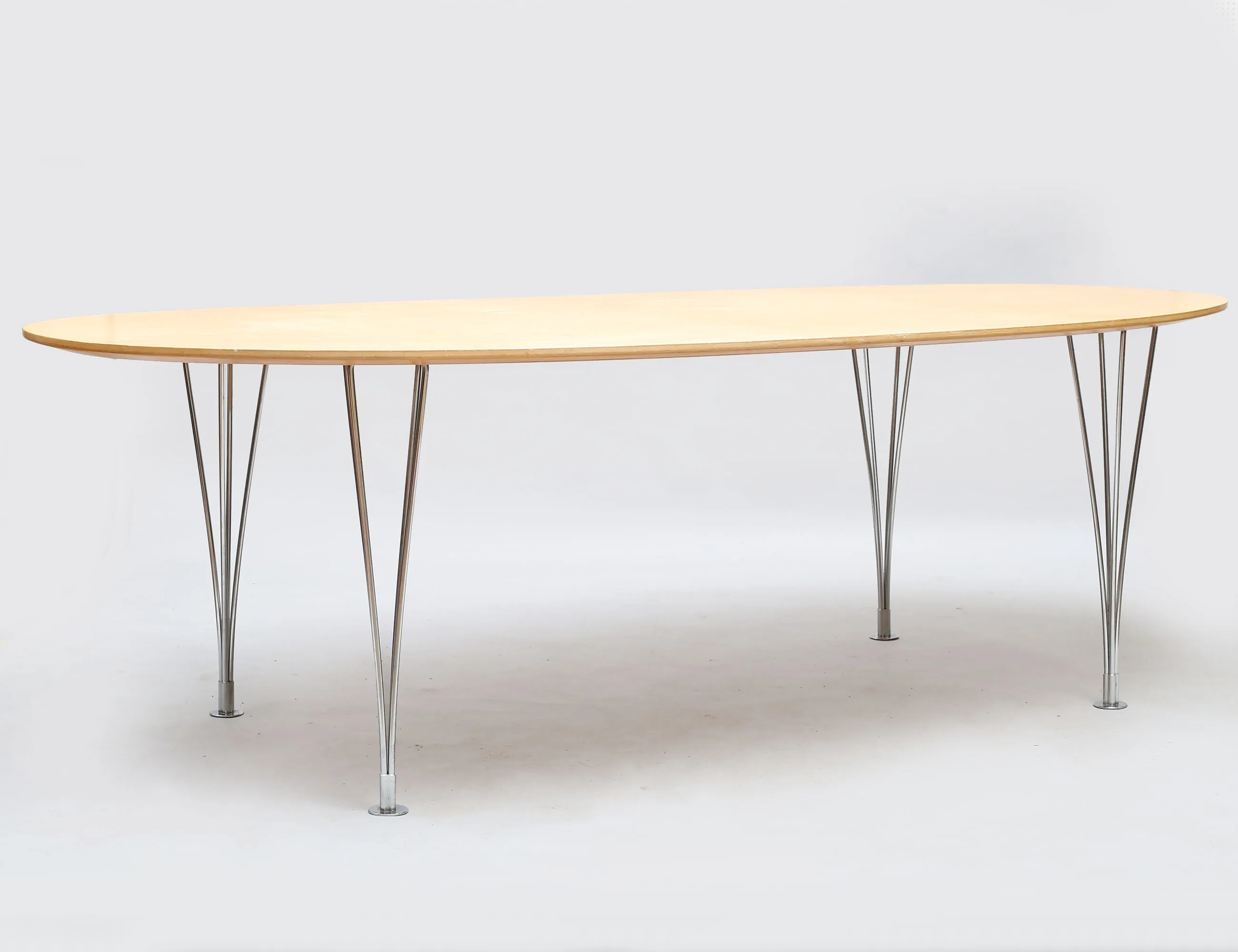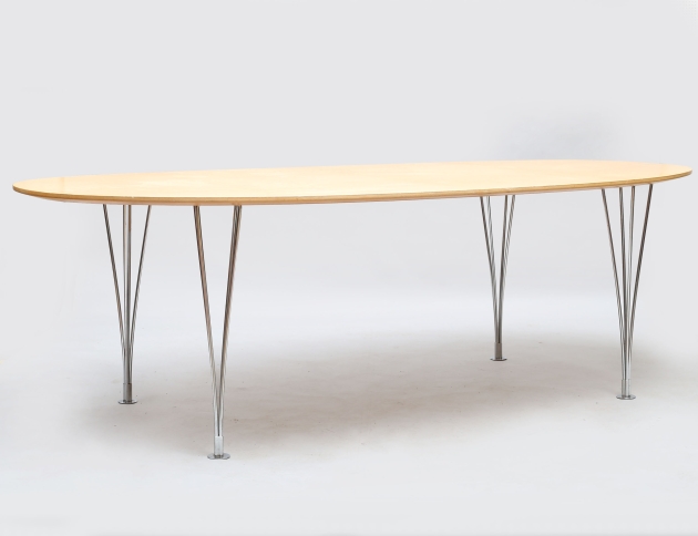 matbord "Superellips", Bruno Mathsson International, skiva i masurbjörk, spännben i metall, etikettmärkt, höjd 70, bredd 220x110 (smärre bruksslitage)