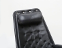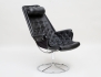 fåtölj "Jetson", klädd i canvas och svart läder, benställning i kromat stål, justerbar nackkudde, snurrbar med retur, etikettmärkt, god kondition, sitthöjd ca. 43, höjd 98