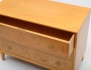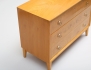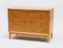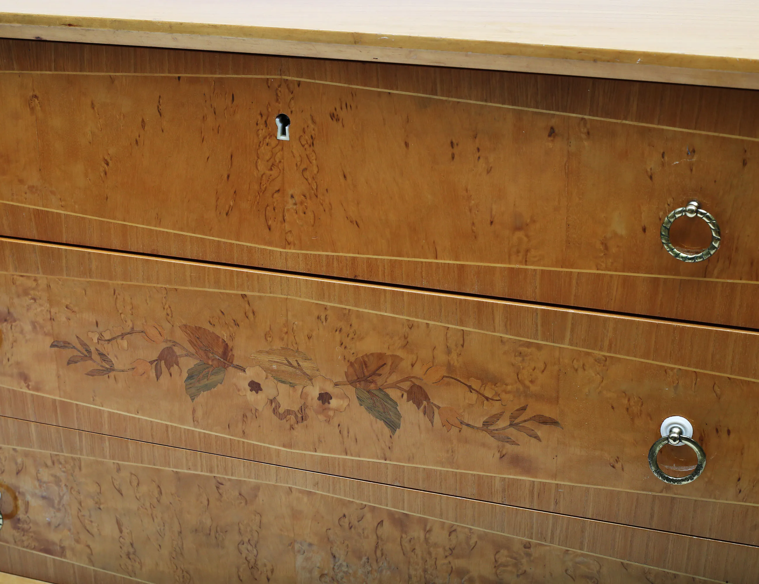 alm och almrot, intarsiadekor, tre lådor, dragringar i mässing med benfäste, höjd 64, bredd 85, djup 39 (ett benfäste saknas)