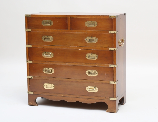 idegran, beslag och handtag i mässing, sex lådor, höjd 71, bredd 71, djup 30 (smärre bruksslitage)
